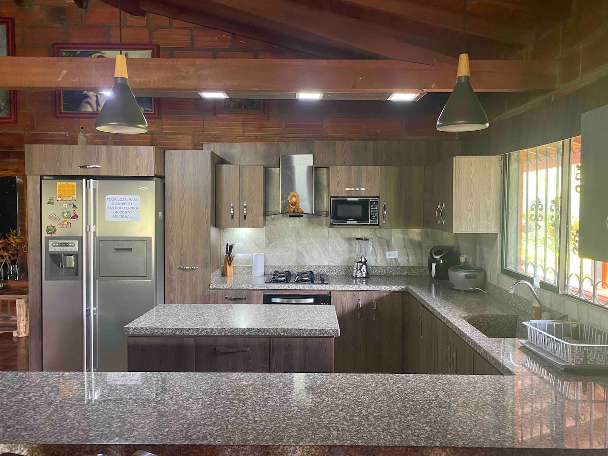 To očarljivo in ekskluzivno bivališče se nahaja 50 minut od Niquie, v bližini Yolombo Antioquia. Ponujamo vam udobne sobe, dve nadstropji, viseče mreže, popolnoma opremljeno kuhinjo, prostor za oblačila, 4 kopalnice, bazeni za odrasle in otroke. prostor za žar z zunanjo kuhinjo, prostor za kampiranje, disko, bar z videoposnetki, če stranka to želi. blizu naravnih bazenov (10 minut hoje.) Naravni prostor, poln miru, zelene površine, zelo varen, s spektakularnim podnebjem.