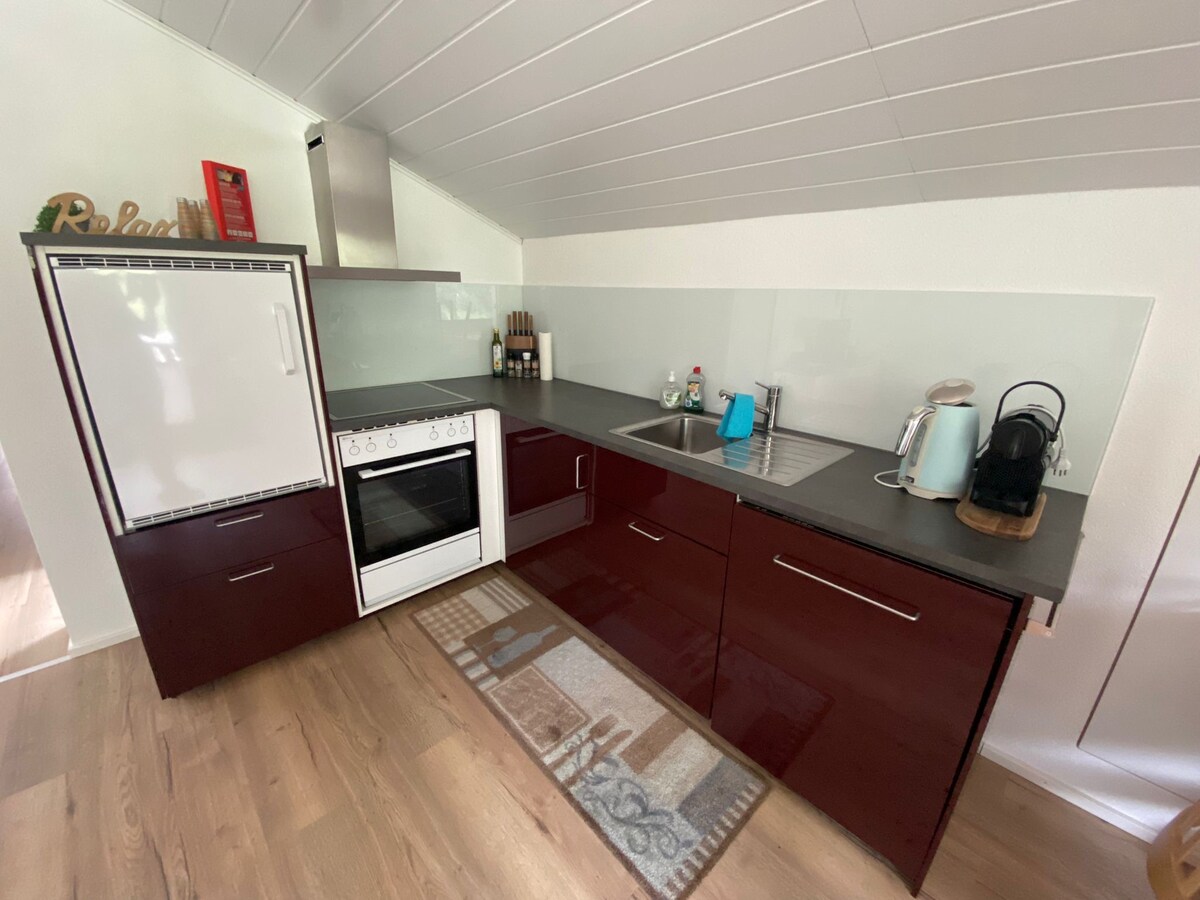 Mirna lokacija! Odličen razgled! Uživajte v čudovitem razgledu na okoliške gore. Stanovanje se nahaja v zgornjem nadstropju naše 3-družinske hiše. Živimo spodaj. Daleč od vrveža vasi, do katerega se lahko sprehodite v 15 min. Avtobusna postaja je oddaljena približno 100 m. Dostop je strm in do njega lahko dostopate samo s snežnimi verigami 4x4 plus, ko je sneg. Pozimi pa bo na dnu Terrassenwega na voljo parkirno mesto.