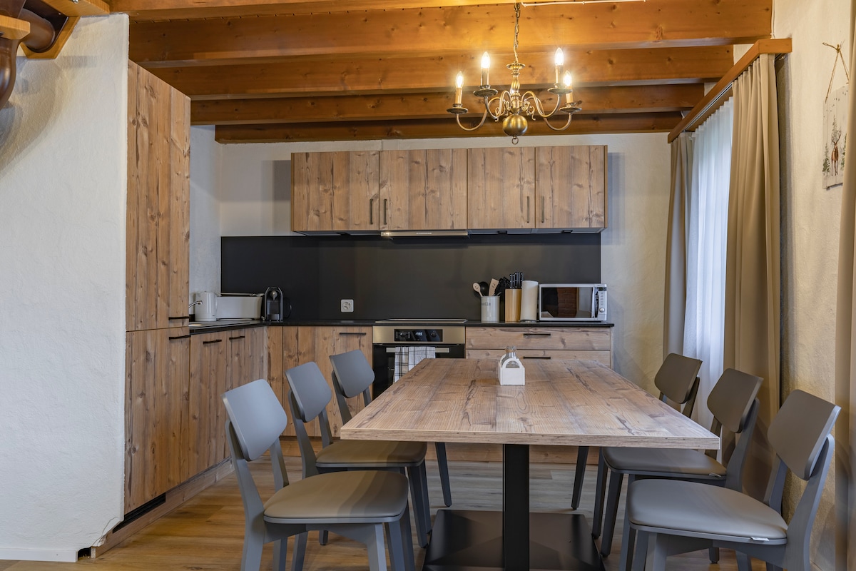Čudovito sodobno stanovanje (popolnoma opremljeno, dve TV plošči, Wi-Fi, Satelitska TV) z vrtom, ki se nahaja poleg vlaka do Jungfraujocha in v smučarski/pohodniški domeni. Uživajte v svežem zraku in čudoviti gorski pokrajini z največjim udobjem!