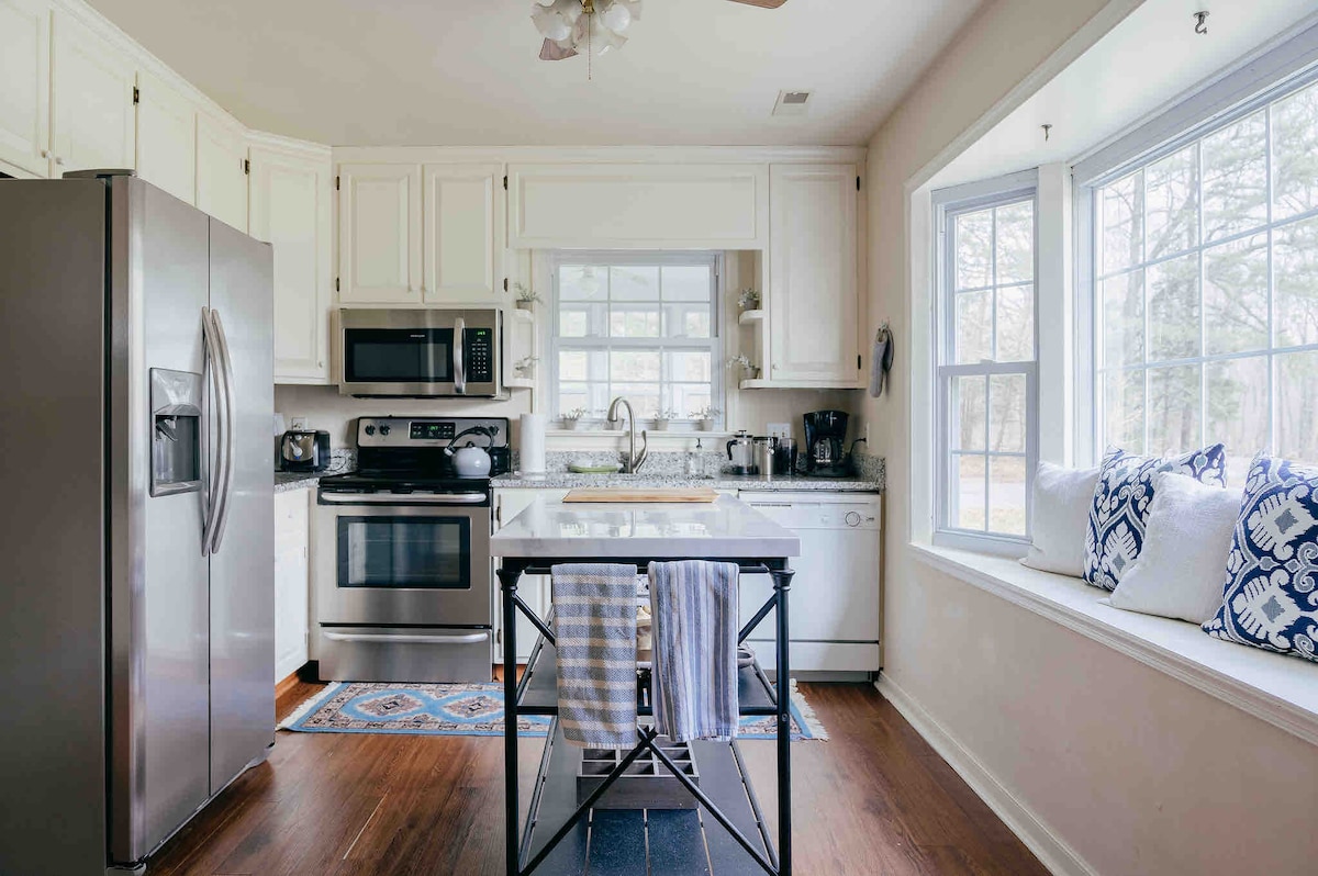 2BR Hen and Hound Cottage se nahaja tik pred Orangeom, VA in ima zasebno ograjeno dvorišče za hišne ljubljenčke in dostop do sosednjega Montpelierja Jamesa Madisona in številnih sprehajalnih poti. Poleg tega smo le nekaj minut oddaljeni od vseh priljubljenih poročnih prizorišč v Orangeu in kratke vožnje do narodnega parka Shenandoah. Naša hiša na kmetiji Whistle Stop (poimenovana po vlaku, ki pelje mimo) je poleg hiške na deželi, če nas potrebujete. V nasprotnem primeru je bivališče vaše. Pridite in uživajte v državi!
