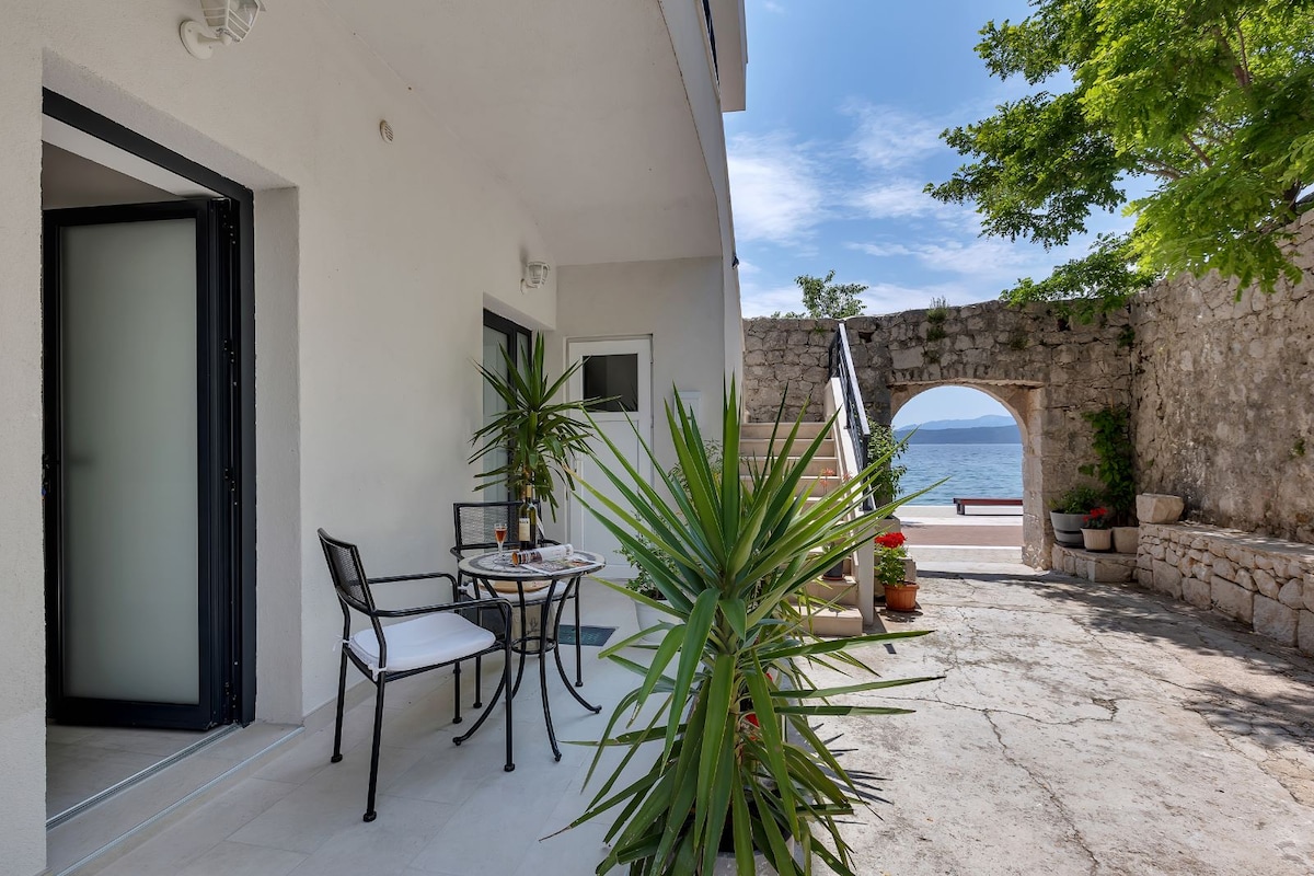 Udobno in udobno stanovanje s čudovitim pogledom na morje, ki se nahaja na promenadi Igrane, 2 metra od plaže. Ima 50 m2 južno obrnjeno teraso z ležalniki - zagotavlja sonce ves dan, pa tudi senco. To vas bo takoj pripeljalo v praznično stanje! Opremljen je tudi z klimatsko napravo,brezžičnim internetom, kuhinjskimi pripomočki itd. V bližini stanovanj - supermarketi (20 m), kavarne, trgovine s spominki (5 m), bankomat (2 m) itd. Priporočljivo je za odlične poletne počitnice, ki si jih boste zapomnili!