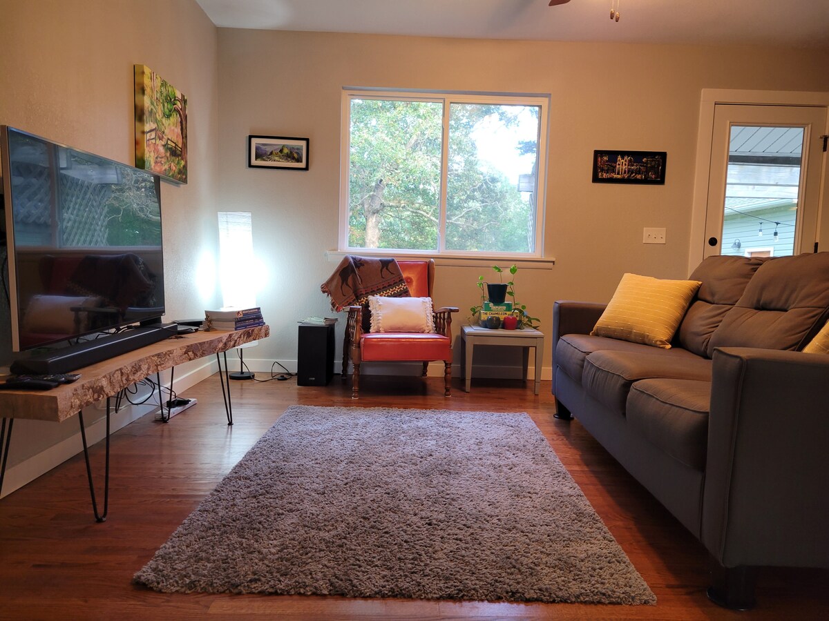 Upgrades: -as of July 2024 1. Water softener system -Jan 2024. 2. Laundry services available for a fee ($3 per load to wash, $3 per load to dry) 3. Tankless water heater added 4. New paint and renovation of interior images. A tiny quiet cove of delight with a private entrance and self check in/out process access. Cozy, quaint, and quiet. Awaken refreshed after sleeping comfortably on a Serta Perfect Sleeper mattress. No need to meet with host. Let yourself in.