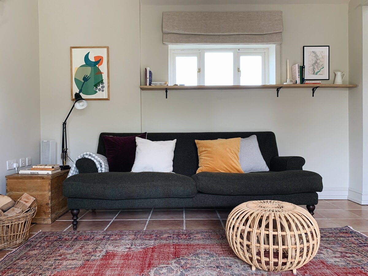 Sproščujoče in čudovito zasebno kmečko skrivališče . Naša preprosto oblikovana in udobna hiška na deželi se nahaja nekaj razdalje od naše hiše in je v celoti samostojna s kuhinjo, lastnimi vhodnimi vrati, samostojnim vstopom in zasebnim lepim dvoriščem, ki se nahaja na našem sosednjem polju. Idealno za vadbo psov. Je blizu osupljivih sprehodov v Cotswoldu in odličnih pivnic ter se nahaja na dobri lokaciji za obiske številnih znamenitosti Cotswolda. Ima močno omrežje Wi-Fi, zaradi česar je miren prostor za delo od doma.
