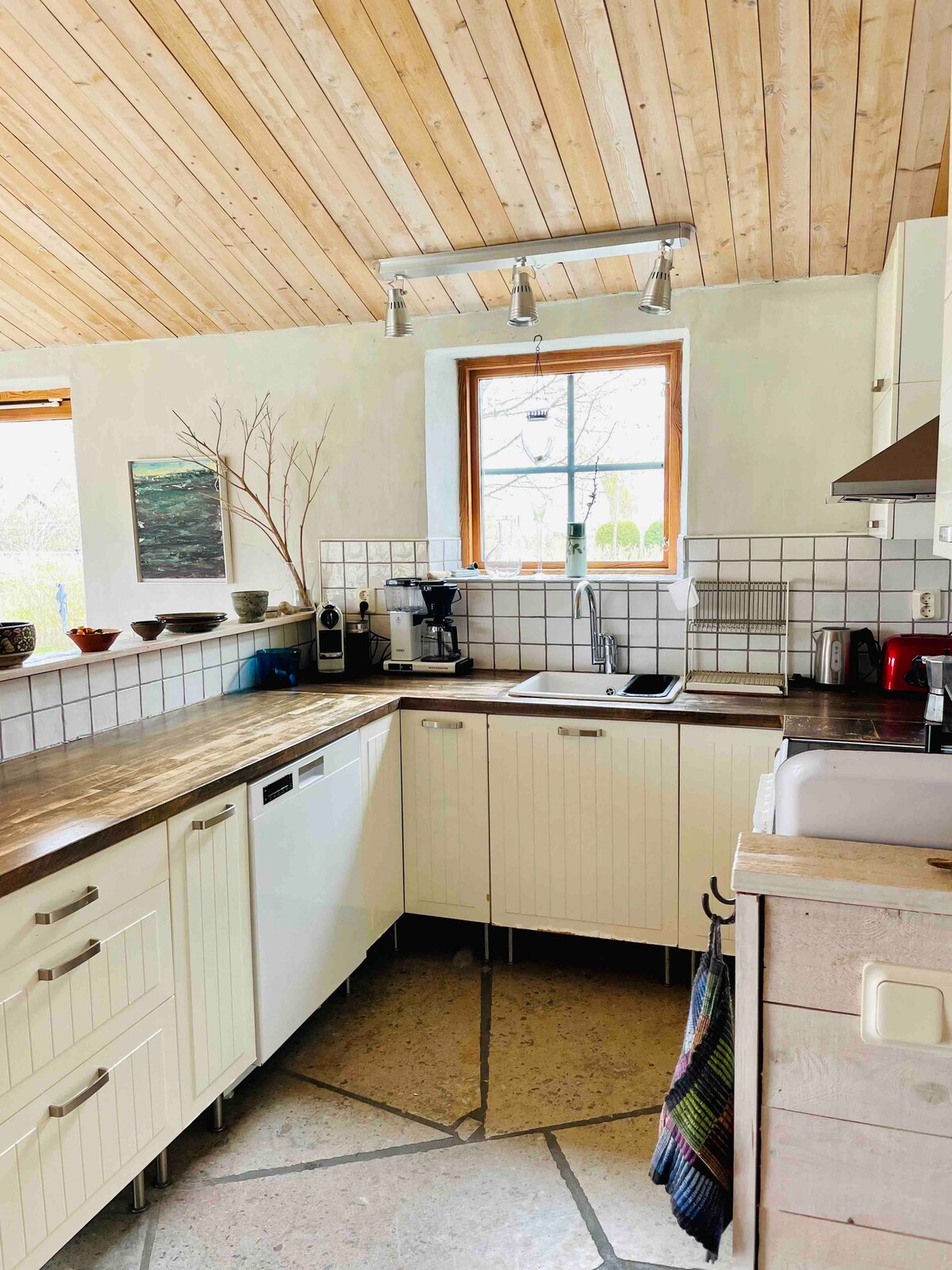 Dobrodošli v tem svetlem in udobnem stanovanju v zgornjem nadstropju stare šolske stavbe. To je približno 100 kvadratnih metrov, ki je sestavljen iz kuhinjskega dela in jedilnice, dveh spalnic ter prhe in stranišča. Do stanovanja dostopate po stopnicah v namestitvi. Do stanovanja se lahko pripeljete tudi s požarnimi stopnicami na zunanji strani namestitve. Kot najemniki imate svoje zgornje nadstropje. V pritličju šolske hiše so umetniški studii, stanovanje in salsbibliotek. Imate dostop do svojega velikega vrtnega parka.