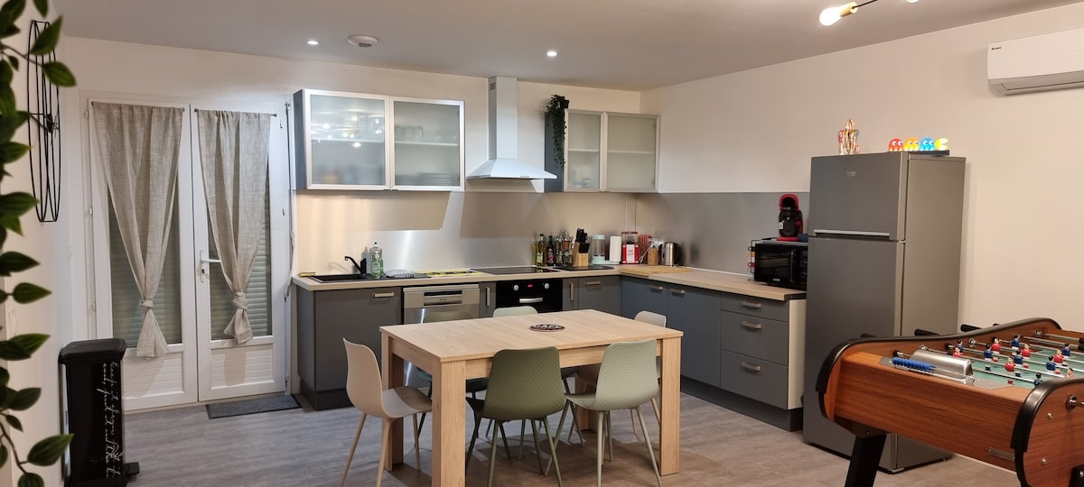 Sprostite se v tem zabavnem in elegantnem prenočišču z bazenom 4 metre x 2 metra (samo v juliju in avgustu). Naša hiša je bila v celoti prenovljena konec leta 2022. Mir in tišina vam bosta omogočila, da si napolnite baterije za družine ali sodelavce, medtem ko ste v bližini vseh trgovin. OPOMBA: videoigre Pac-Man in 37 iger druge konzole so BREZPLAČNE. Upoštevajte pa, da profesionalno otroško stopalo ostane proti plačilu in bo zahtevalo kovanec v višini 50 centov na del.
