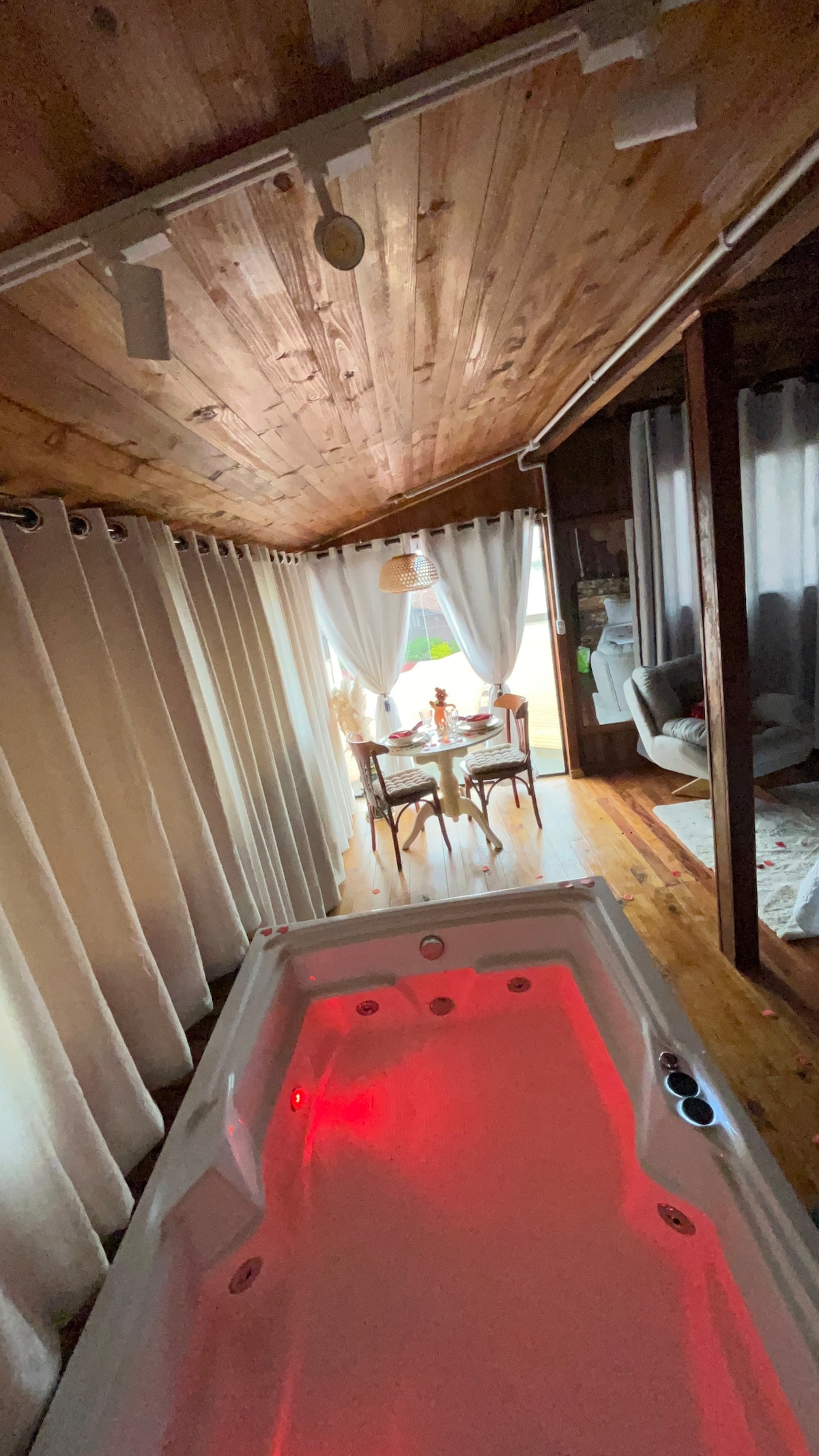 Somos o @greenhouseexperience Um refúgio exclusivo em meio à natureza, a apenas 3 km de Jurerê Internacional. Nosso chalé, perfeito para casais, oferece o conforto essencial para uma experiência inesquecível de conexão com a natureza. Relaxe na varanda cercada por árvores, aproveite a sauna seca, a jacuzzi ao ar livre e aqueça-se à beira da lareira a lenha. A propriedade também conta com uma unidade residencial e outra cabana, onde funciona um espaço terapêutico que atende hóspedes e visitantes.