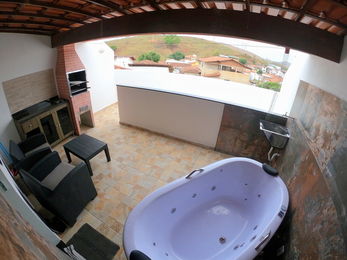 Endereço: Via A 138, Maria Eugênia. Flat privativo no primeiro andar, acesso por escadas, varanda com banheira de hidromassagem, 1 suíte com ar split, churrasqueira, cozinha, sala, internet, smart tv e 1 vaga de garagem para veículos de pequeno ou médio porte (NÃO CABE CAMINHONETES OU SUVS GRANDES). Centro - 2 km (9 minutos) GV Shopping - 3 km (10 min) Rodoviária - 3 km Bar Chalé Butequim - 600 m Padaria Dom e Arte - 600 m Supermercado Juvenal - 600 m > Fornecemos roupas de cama e banho.
