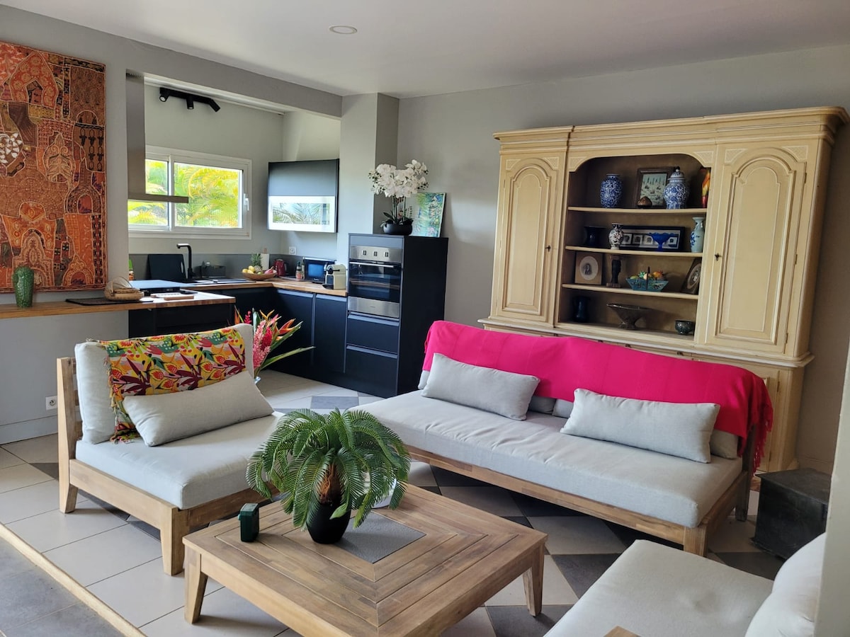 Logement en bas de villa avec accès indépendant situé dans une maison bioclimatique en lisière de forêt tropicale. Idéal pour les amoureux de la nature. Vous profiterez d'une chambre spacieuse, de sa salle de bain et de sa grande terrasse équipée d'une petite cuisine. Partez à la découverte des randonnées (canyon moustique) directement au départ de la maison ou reposez vous bercé par le bruit de la forêt et de la rivière. Egalement proche des commodités (5km commerces, 20km aéroport)
