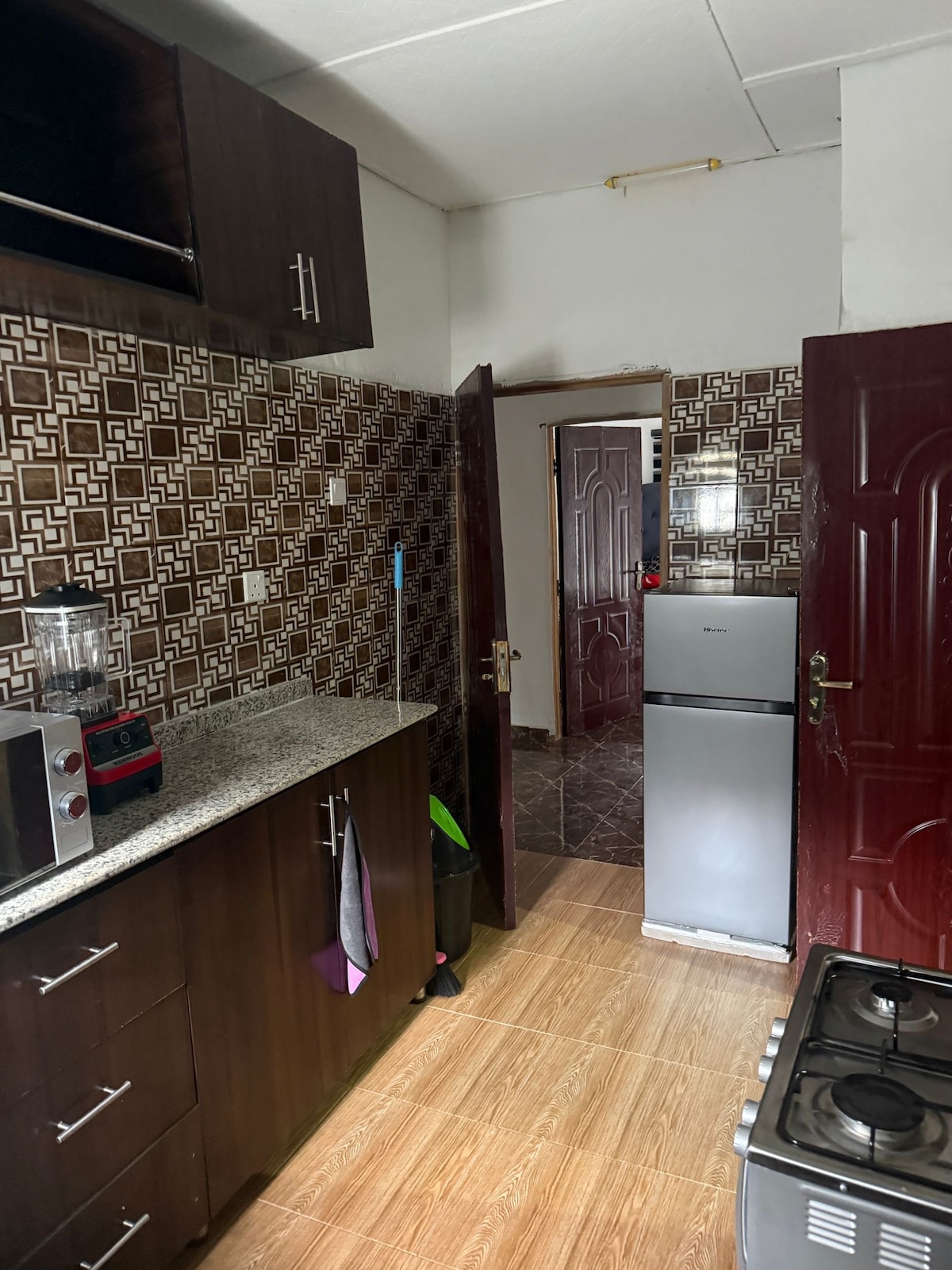 Dobrodošli v hiši za goste Tomla, tukaj v mestu Benin, vaš drugi dom! Elegantno dvosobno stanovanje s kratkim najemom, zgrajeno leta 2025, se nahaja v osrčju Benin Cityja, Sapele Road, ob križišču Limit Junction (Eriaria Quarters) 15–20 minut do obvoznice, palače Oba in letališča. Lastnosti: Zaščitena ograjena zgradba z električno ograjo Klimatska naprava na sončno energijo. Wi-Fi Spalnice v spalnici 2 kopalnici, 3 stranišča Jedilnica Pametna televizija s satelitom DSTV Popolnoma opremljena kuhinja.