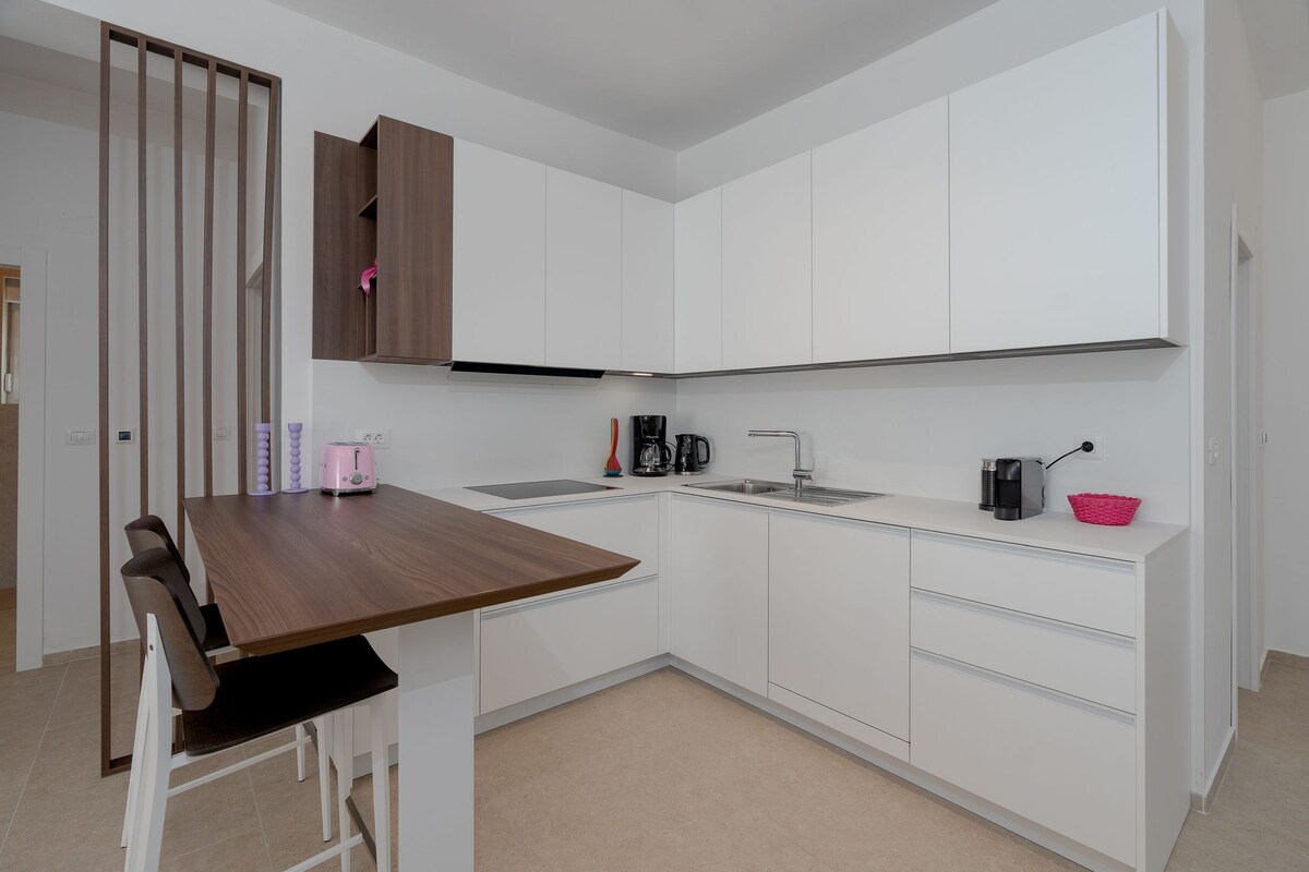 Naj bo vaš obisk otoka Rab nepozaben v novem (2021), prostornem sodobnem apartmaju, ki je popolnoma opremljen, da bo vaše bivanje prijetno. Uživajte v prednostih brezplačnega parkiranja 0-24 + 10 minut hoje od mesta ali 150 m do taksi čolna. Stanovanje: hiter in stabilen optični WI-FI internet 200 Mb/s Popolnoma klimatiziran pralni in sušilni stroj 65-palčni LED Ambilight Android TV (Netflix je vključen) 2 prostorni spalnici 2 kopalnici Popolnoma opremljena sodobna kuhinja z velikim hladilnikom Brezplačno parkiranje 0-24