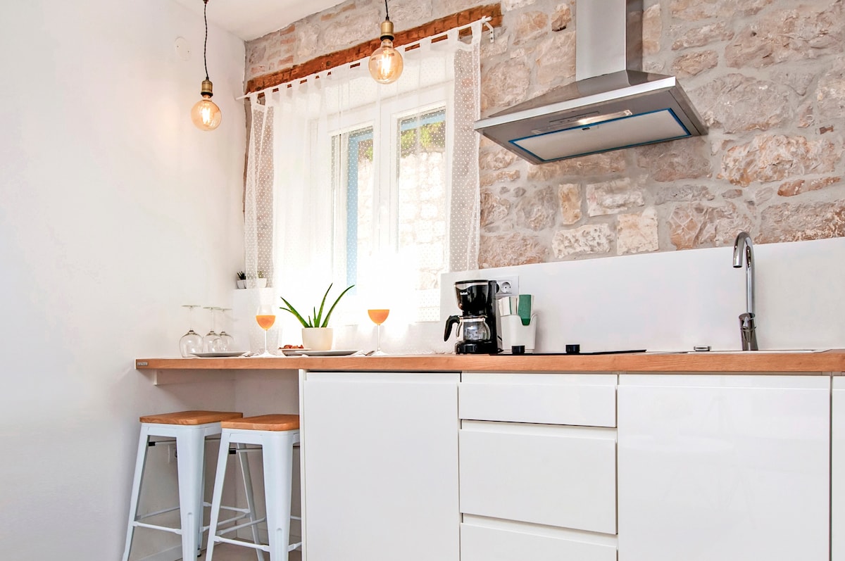 Dobrodošli v svojem prijetnem bivališču v Rovinju! Ta očarljiva, na novo prenovljena garsonjera v pritličju se nahaja v več kot 200 let stari kamniti hiši, ki je bila skrbno obnovljena, da bi ohranila svoj zgodovinski značaj, hkrati pa ponuja sodobno udobje. Nastanitev se nahaja v osrčju živahne in pristne soseske, le nekaj korakov od najboljših restavracij, kavarn in barov v Rovinju. Sprehodite se po slikovitih ulicah, uživajte v lokalnem vzdušju in doživite pravi duh starega mestnega jedra.