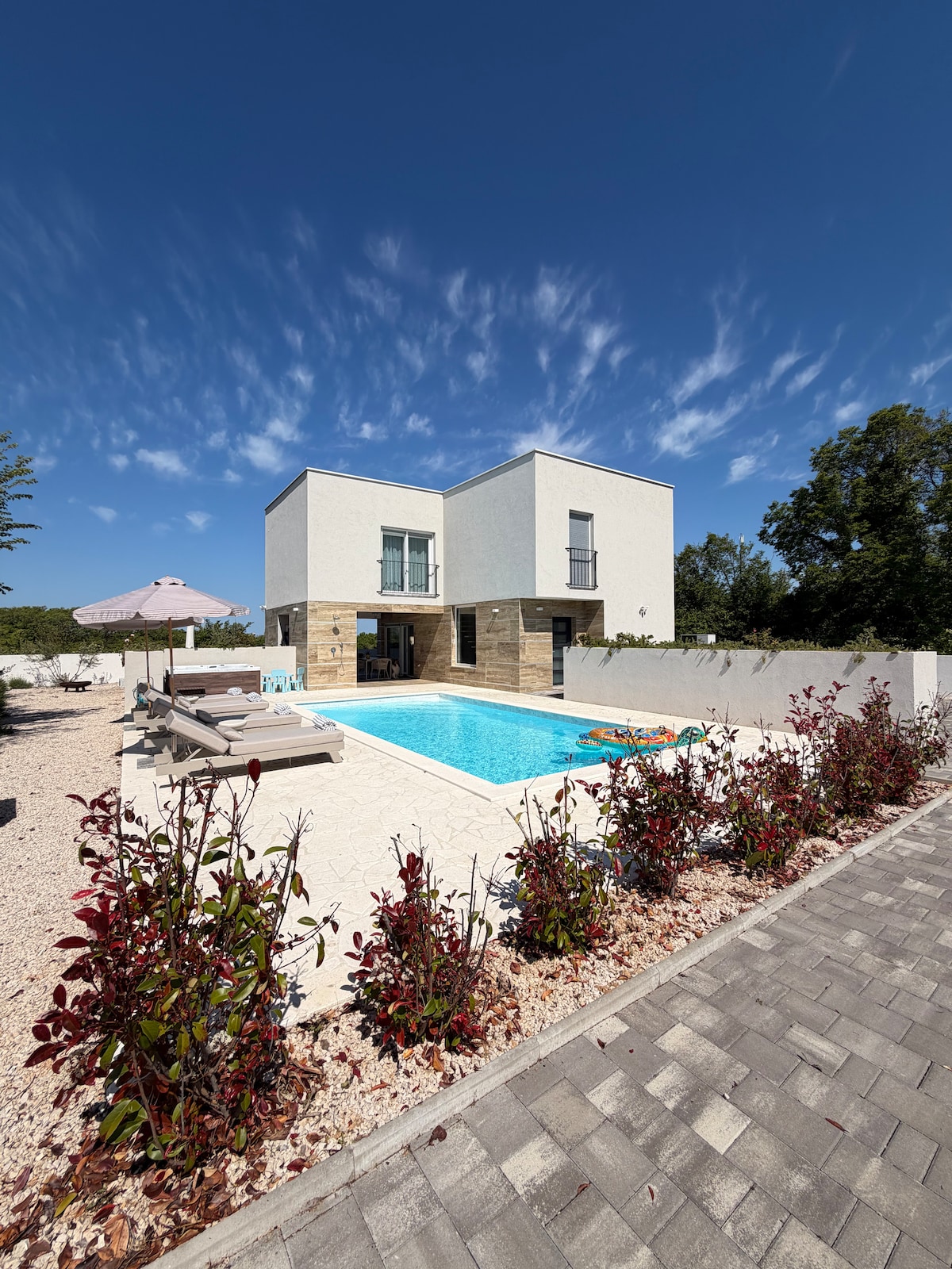 Dobrodošli v vili Noel v Privlaki! Ta elegantna, razkošna vila se nahaja v mirnem predelu, le 600 metrov od peščene plaže. Na novo zgrajen in opremljen z vrhunskimi napravami s savno, sodobno notranjostjo in brezplačnim parkiranjem. Uživajte v 4 klimatiziranih spalnicah z zasebno kopalnico. Zunanji prostor ponuja ogrevan bazen, udobno sedežno garnituro, ležalnike, senčila in žar na prostem. Sprostite se pod drevesi z visečimi mrežami, ognjiščem in ljubkim šotorom za otroke.