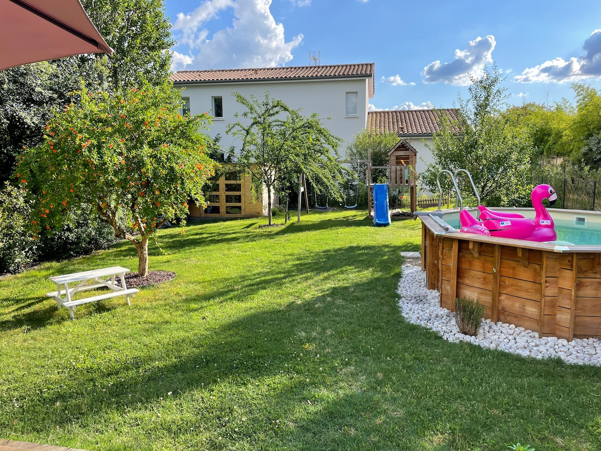 Dobrodošli v suiti Zorrino. Nahaja se v zelo mirni soseski. »Sprostite se v tej udobni nastanitvi.« Od Bordeauxa ste oddaljeni 15/20 minut, od vinograda 5 minut, od morja pa 45 minut vožnje z avtomobilom. Brezplačno parkiranje na ulici Kuhinja je popolnoma opremljena. Spalnica in dnevna soba gledata na vrt. Velika prha. Neodvisna spalnica + raztegljiv kavč za 2 otroka ali 1 najstnika/odraslo osebo. Zasebna terasa. Majhen bazen. TV in hiter Wi-Fi.