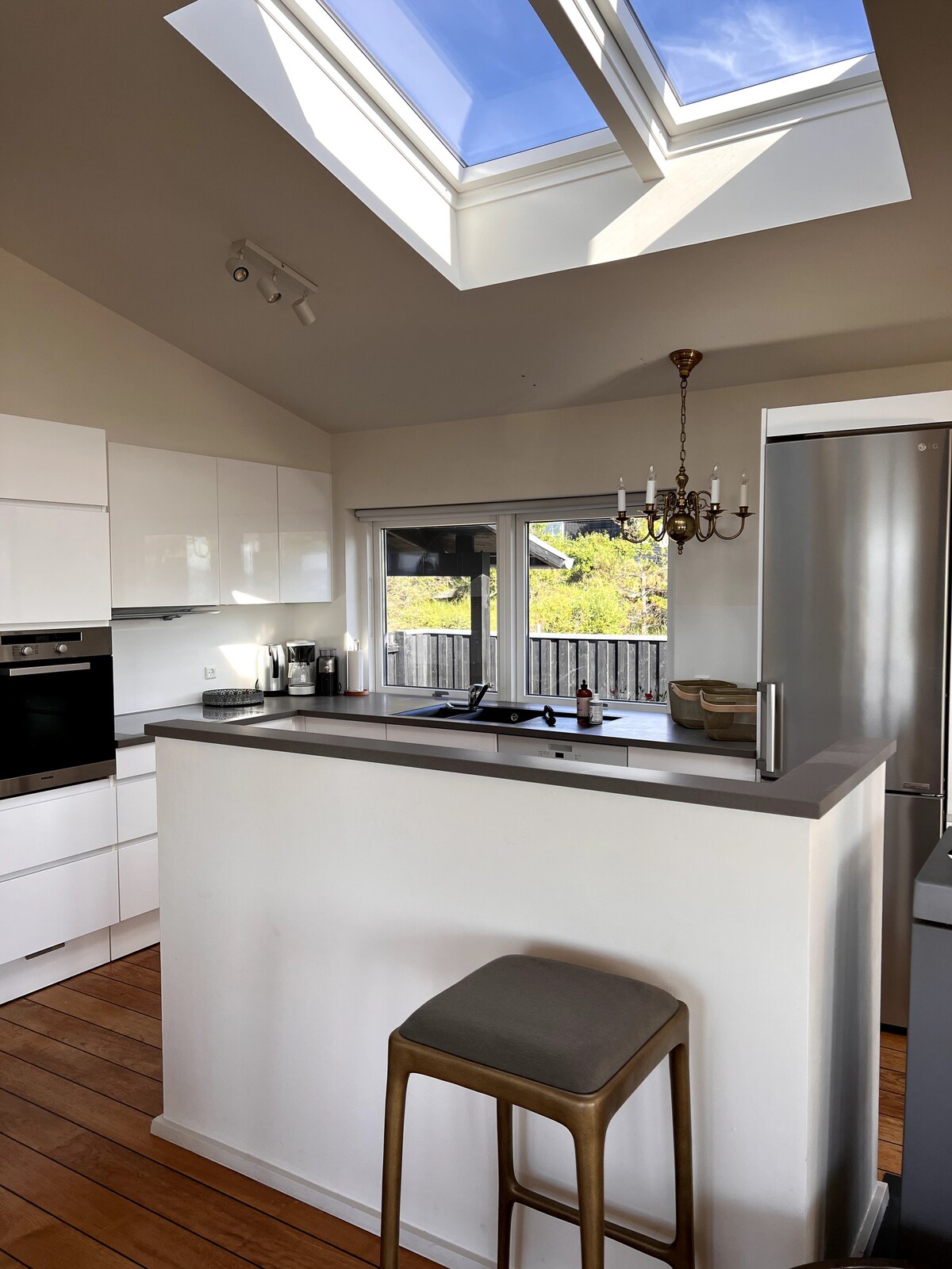 Čudovita kuhinja/dnevna soba z veliko svetlobe, tako zaradi strešnih oken kot tudi velikih oken proti terasi in vrtu. Kuhinja ima štedilnik, peč na drva in je odprta v jedilnico, ki je delno odprta v dnevno sobo. 2 sobi z velikim podstrešjem, velika kopalnica s spa in prho ter pomivalnica z umivalnikom. Najbližja plaža je oddaljena 1000 m, najbližja trgovina pa 2 km.