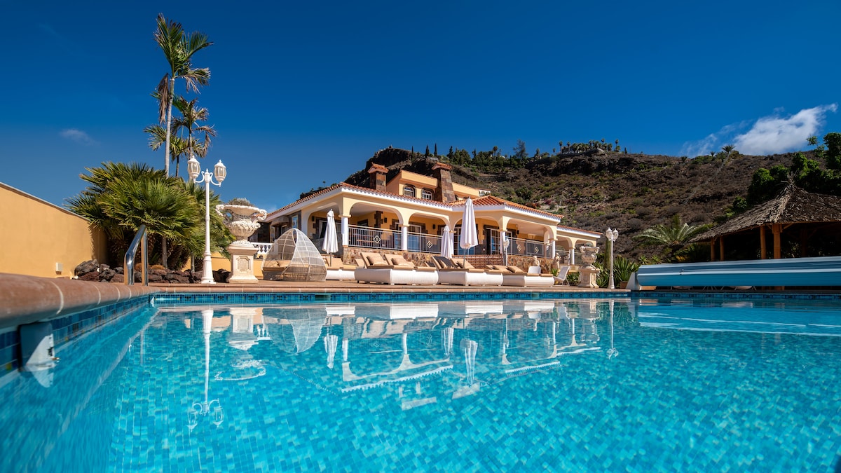 **Luksuzna vila v Las Palmas de Gran Canaria** Odkrijte našo razkošno vilo z visokokakovostnim pohištvom v Las Palmasu. Ponuja 6 prostornih velikih sob, od katerih ima vsaka svojo kopalnico, veliko odprto kuhinjo, velik bazen, savno, sobo za zabave z biljardno mizo, namizni nogomet, karaoke, projektor, mizo za poker in še več. Le nekaj minut hoje do plaže Playa del Hombre. Rezervirajte zdaj za nepozabne počitnice.
