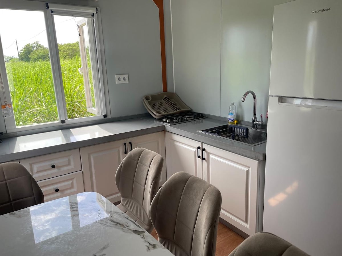 V cvetličnem parku posestva z več hiškami na deželi vas sprejmemo v tej nastanitvi, ki jo sestavljajo dvoposteljna soba, dvojni vmesni hodnik in dve postelji, 1 mesto v dnevni sobi, kopalnica/stranišče, opremljena kuhinja in terasa. Mreže proti komarjem v vseh posteljah, idealne za družino z otroki, možna postelja za dojenčke.