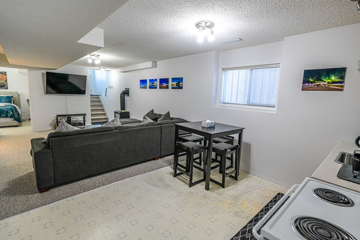 This quiet, stylish and modern lower suite located in the newer neighborhood of Westgate features high ceilings, nearby parks, walking trails and no neighbors on three sides. For your convenience it features a separate entrance, an abundance of parking and a gym in the garage! The location being just blocks from the hospital, close to the airport, Costco, Walmart, restaurants and many other amenities makes this suite the perfect home base for your trip!