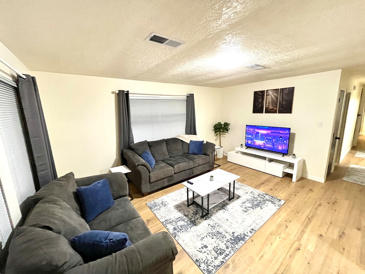 Bring the whole family to this great place with lots of room for fun. This 1 bedroom offers a living area with a Smart TV that has Netflix as well as YouTube TV, the kitchen area offers a full fridge as well as microwave, electric cooktop, coffee maker (no oven), it also offers a island for dining or hanging out. The bedroom has a large king-size bed. The bathroom has a large walk-in shower.