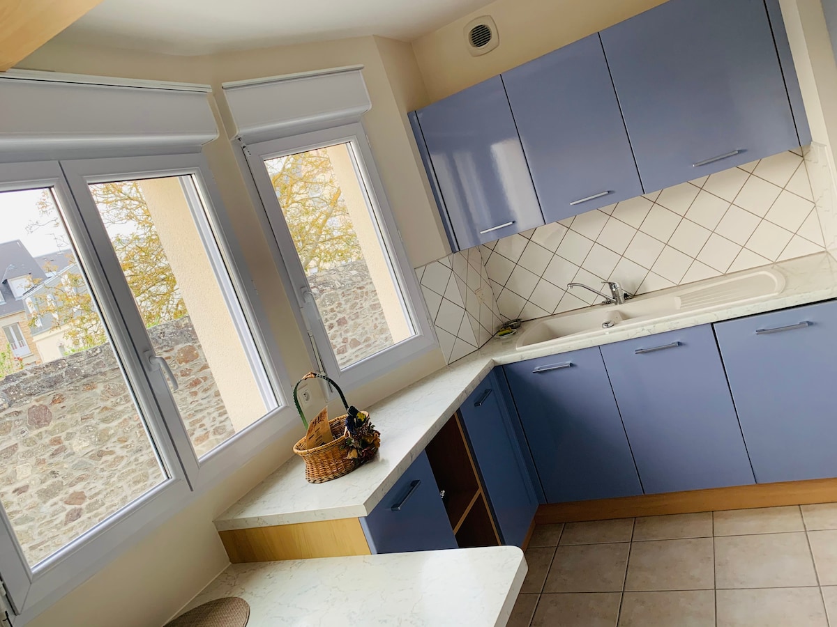 Mirno in osrednje bivališče popolnoma novo. Stanovanje z dostopom do 5 stopnic, južno obrnjena terasa, 2 sobi, vključno z dnevno sobo - kuhinjo z raztegljivim kavčem, udobna soba (zakonska postelja) z integrirano kopalnico, ločenim straniščem. Zasebna terasa ima mizo in stole, 2 sonca, električna plancha. Zelo dobro se nahaja: 350 metrov od plaže Donville les bains, 10 m hoje od železniške postaje in središča mesta Granville, 200 m od vrta Dior.