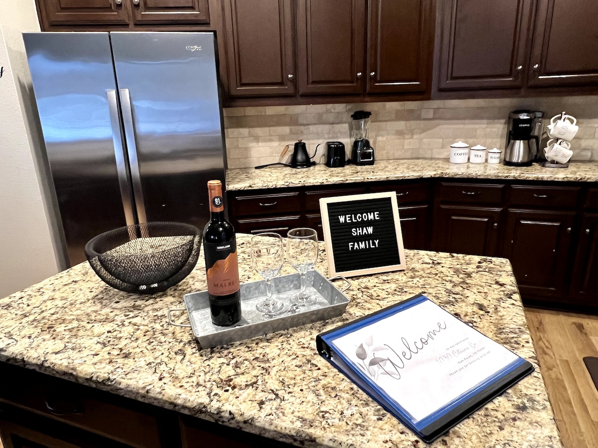 Najboljše prenočišče s 5 zvezdicami na jezeru Lewisville! Sodobna kmečka hiša 3BR/2BA ponuja osupljiv razgled na jezero, dve verandi, popolnoma prenovljene kopalnice, ki so primerne za spa, dodelani les, gurmansko kuhinjo, nerjavne naprave, udobno pohištvo in sanjske postelje. Na več kot 1 hektar ograjenem območju uživajte v zasebnih varnostnih vratih, skupni opremi s 5 ZVEZDICAMI: ribolov, MASAŽNA KAD za 8 oseb, kajaki, deske za veslanje, igrače ob jezeru in žar, ki je opremljen kot hotel, vendar se počutite kot doma - kot nalašč za sprostitev ali igro na jezeru ves dan.