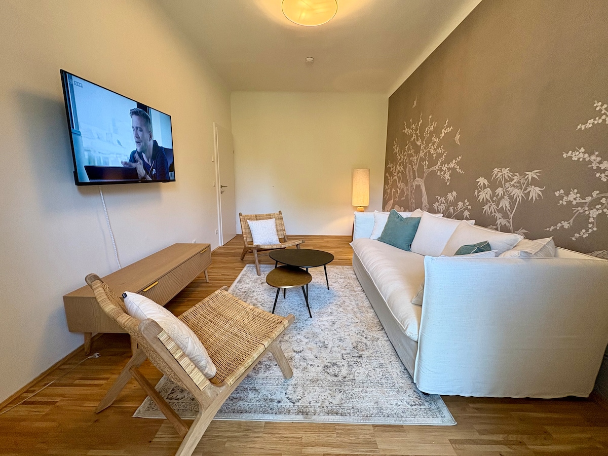 Počutite se kot doma! Idealna nastanitev za vas - ne glede na to, ali gre za delo, obiske dogodkov ali potovanje po mestu z vašimi najdražjimi. Ljubeče opremljeno staro stanovanje vas obdaja s svojim šarmom - in od prvega trenutka. S pozornostjo do podrobnosti smo upoštevali vse, kar potrebujete med bivanjem. Poleg popolnoma opremljene kuhinje, velike dnevne sobe in sodobnega delovnega prostora (hiter Wi-Fi) vam stanovanje ponuja odlično kopalnico s pralnim in sušilnim strojem.