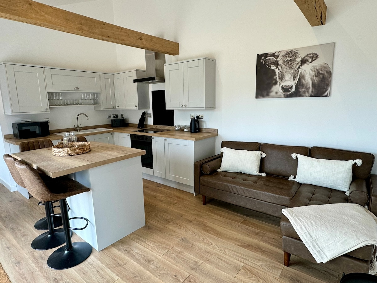 Luksuzno dvosobno stanovanje z vsem, kar potrebujete za sproščujoče in udobno bivanje. Geoff 's View se ponaša s čudovitim razgledom na sprednji paddock in valovito podeželje Wiltshire. Skupaj z masažno kadjo. S talnim ogrevanjem v celotnem prostoru je kuhinja/bivalni prostor odprtega tipa z hrastovimi tramovi in dvokrilnimi vrati, ki se odpirajo na pogled na paddock. Dve prostorni spalnici z zakonsko posteljo in zakonsko posteljo. Popoln oddih na podeželju, neverjetni sprehodi in ribolovno jezero v bližini.