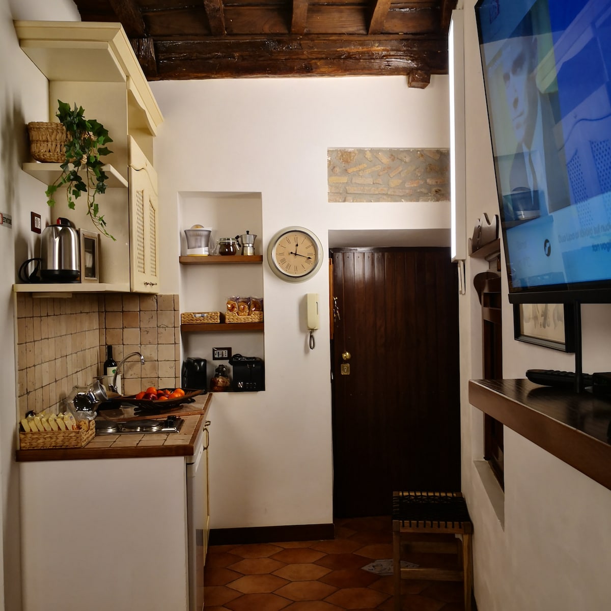 To edinstveno rustikalno in elegantno predelano stanovanje je polno detajlov iz lesa, kovin in kamna, vse je ročno izdelal Giulio, njegov lastnik. Čudovita terasa vam bo vzela sapo. Kaj pravite na kavo s copati, medtem ko razmišljate o Koloseju ali opazujete, kako sonce zahaja za Vatikansko senco iz koče? Nahaja se le nekaj minut stran od postaje Termini, vendar je še vedno mirno prenočišče. Dostop do stanovanja je opravljen po stopnicah. Zajtrk je na naš račun!