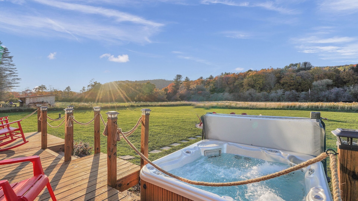 Ta udobna hiška na deželi ponuja popolno podeželsko zatočišče, ki se nahaja na 2 zasebnih hektarjih, le 6 milj od vasi Ellicottville in letovišča Holiday Valley Resort. To prenočišče je idealno za družine ali pare in nudi prostor za sprostitev v zaprtih prostorih in na prostem. Uživajte v toplini bučnega kamina na drva v dnevni sobi, plinskem kaminu v kuhinji in udobnih spalnicah. Prostorna terasa je kot nalašč za jutranjo kavo, ognjišče pa vas vabi, da se zberete pod zvezdo