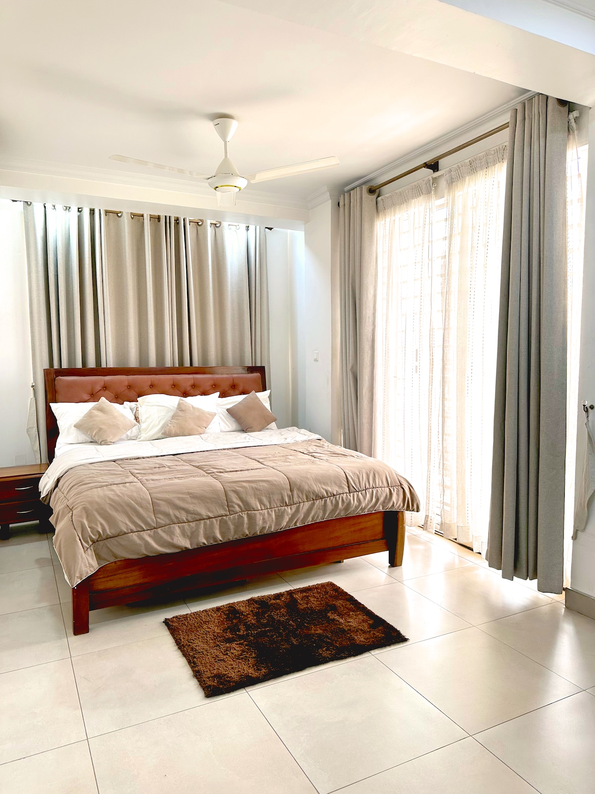 Dobrodošli v udobnem predelanem stanovanju, ki se nahaja v ograjeni skupnosti Lindsay Square v Achimota Golf Hillsu. Stanovanje je le kratkih 10 minut vožnje od nakupovalnega središča Accra in 15 minut vožnje od letališča, zaradi česar je kot nalašč za bivanje za tiste, ki potujejo poslovno ali v prostem času. Ograjena skupnost zagotavlja dodatno varnost in brezskrbnost med bivanjem. Komaj čakamo, da vas sprejmemo.