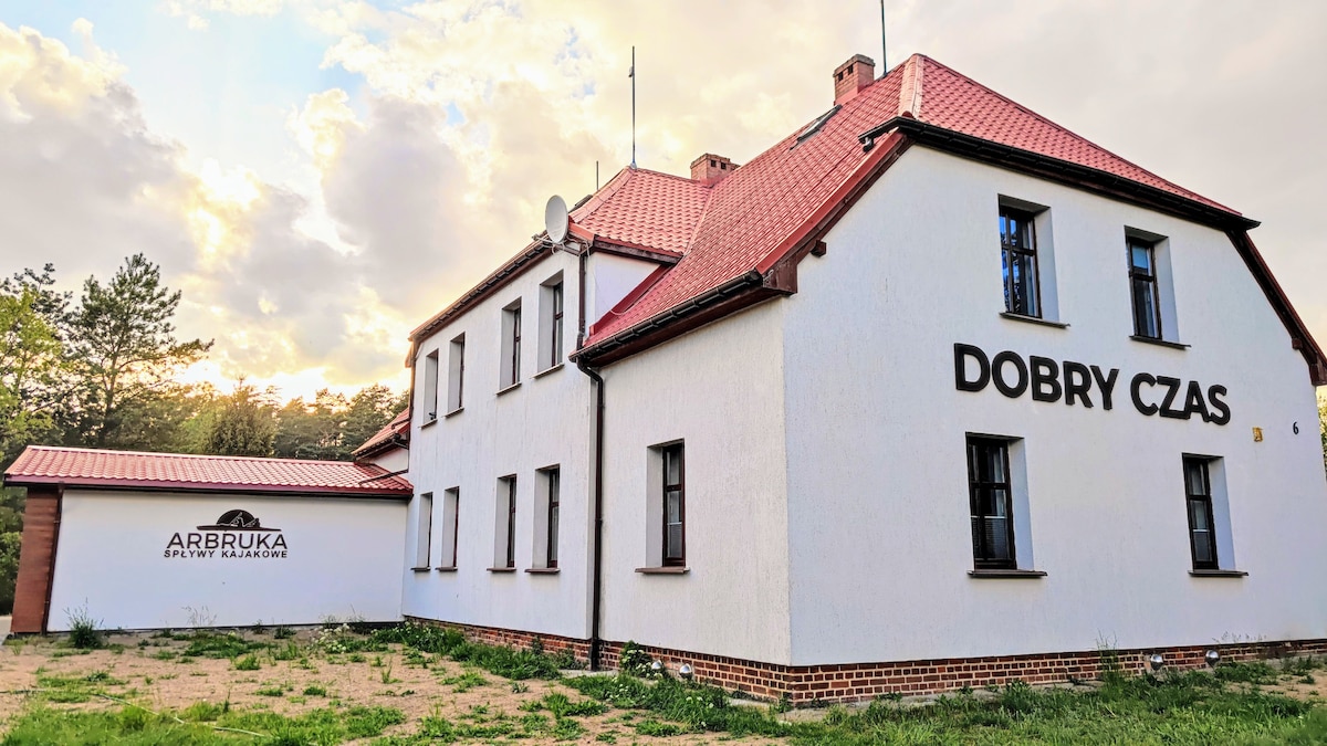 Leta 2021 smo zaključili obsežno prenovo stare hiše električarja v hidroelektrarni (ki je še vedno aktivna) in od tega trenutka je postala hiša za goste »Dober čas«. Tukaj se lahko sprostite od mestnega vrveža tako, da se sprostite v prsih narave - hoja, kolesarjenje ali kajakaštvo vzdolž rečne poti Drawa ali Korytnica. Po dejavnostih se lahko sprostite v paviljonu z žarom ali v skupnem prostoru s kaminom, kjer lahko igrate biljard, družabne igre ali gledate nekaj zanimivega.