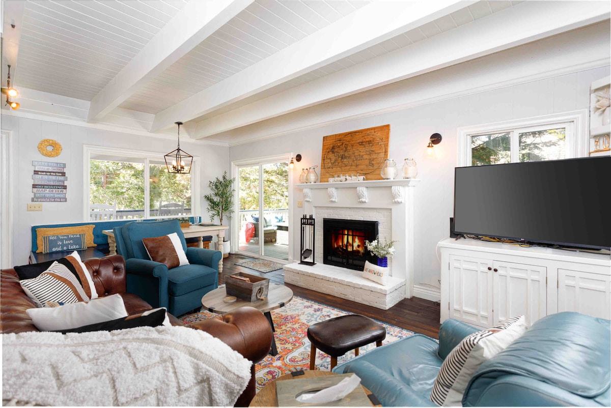 Najboljša lokacija v Lake Arrowheadu! Sprehodite se do mesta in le nekaj korakov stran od zaliva Orchard Bay, popolnega kraja za vse poletne dejavnosti ob jezeru (zaželen zasebni dostop do jezera na zahtevo). Skrbno prenovljena hiška na deželi z veliko teraso, ki je idealna za celodnevno peko na žaru in celo noč počiva pod zvezdami. Ne glede na to, ali se želite sprostiti ali delati na daljavo, je ta koča pravi kraj za vse. Popoln mestni oddih, v celoti opremljen z vsem udobjem doma. Nikoli ne boste želeli oditi!