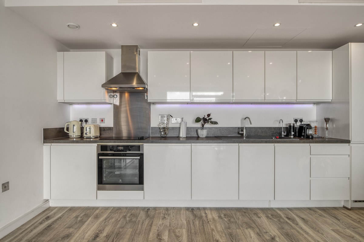 Ne glede na to, ali ste v mestu zaradi koncerta, nogometne tekme ali samo zaradi raziskovanja mesta v varni, sodobni stavbi, ki se nahaja le 5 minut hoje do stadiona Wembley in OVO arene. Boxpark in London Designer Outlet v bližini. Obkroženo z restavracijami, kavarnami, parki in trgovinami z živili. Uživajte v elegantnem dnevnem prostoru odprtega tipa, zasebnem balkonu, popolnoma opremljeni kuhinji z vrhunskimi napravami in sodobni kopalnici. Brezplačen Wi-Fi in pametni televizorji za zabavo. Ostanite aktivni z dostopom do telovadnice v sklopu namestitve.