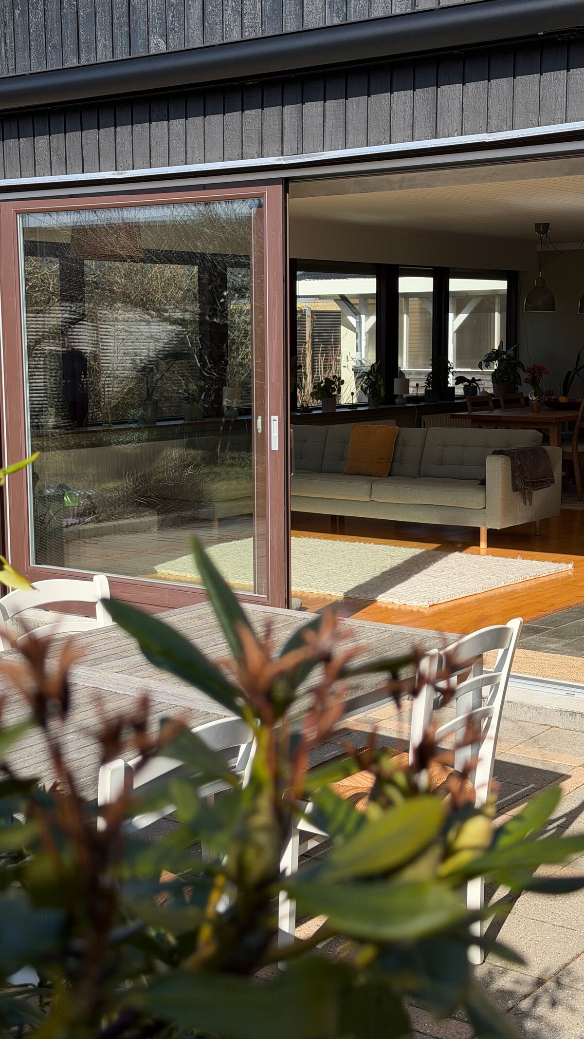Bright 155m² Scandinavian family home in peaceful Greve, 10-min walk to a sandy beach with shallow water, swimming spots and sunset views. Light-filled with wooden floors and large windows. Cozy living room with fireplace and piano. 2 beds + sofabed in workspace, 2 bathrooms (one with floor heating), big kitchen and laundry. Beautiful flower garden with apple trees, berries and space for kids to play. 10-min walk to Greve Center & S-train (25 min to Copenhagen Central). Free parking + 2 bikes.