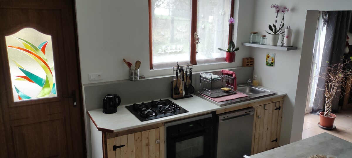 Popolnoma prenovljena nastanitev, ta gospodarska stavba v naši kmečki hiši ohranja značaj starega z izpostavljenimi žarki v prijetnem in toplem vzdušju. V osrčju vasi z vso opremo: pekarna, mesnica, slaščičarna, supermarket, lekarna ... Nastanitev ponuja čudovite količine, z opremljeno kuhinjo, 2 spalnici, kopalnico s prho in pralnico s pralnim strojem. Čudovit zunanji prostor, opremljen in v skupni rabi z našimi gostitelji. Oprema za dojenčke.