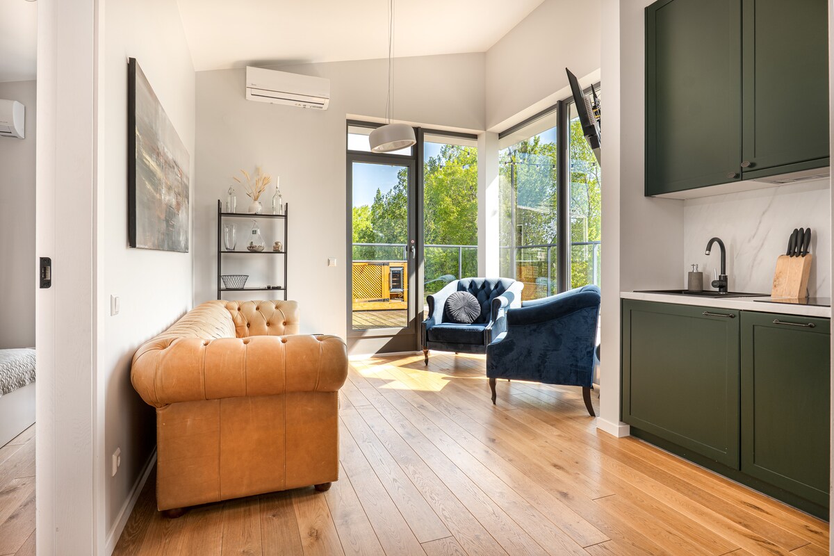 Udobna trisobna suita z dvema ločenima spalnicama v središču Liepaje v bližini parka Beach Park. V eni spalnici z veliko zakonsko posteljo (Queen). Dve zasebni postelji v drugi spalnici. Udoben raztegljiv kotni kavč v dnevni sobi. Poleti lahko uporabljate zunanjo teraso. Največ pozornosti posvečam čistoči – večina gostov apartma ocenjuje kot bleščeče čisto. Videti je točno tako kot na fotografijah. Pritličje, lasten vhod. Celotna stavba je bila v celoti prenovljena leta 2023.