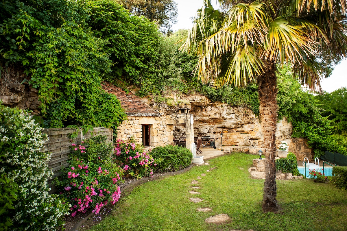 Nenavadna in prijetna, očarljiva hiša ob pečini. V majhni uličici za pešce, tik ob tropskih vrtovih, sredi vasi La Roque Gageac. Blago podnebje v vsakem trenutku s svojo južno usmerjeno izpostavljenostjo. In zahvaljujoč zaščiti pečine boste našli v dnevni sobi in spalnici. Zelo lep pogled s terase reke Dordogne.