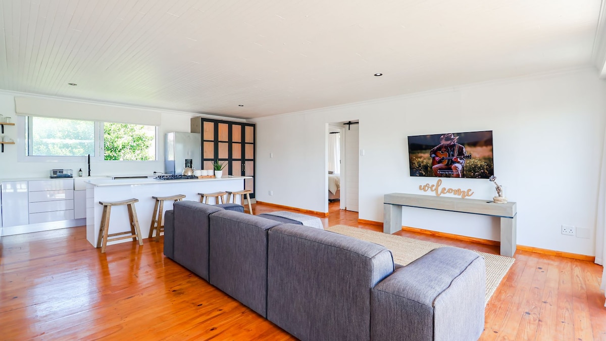 Smo brezplačno! Neskončna modra enota 3 je udoben, topel prostor, ki je namenjen enemu poslovnemu popotniku ali paru, ki raziskuje čudovito vrtno pot. Nahaja se v naravnem Conservancyju z znamenitostmi grmovnega trupa in loparjev. Enota ima popolnoma opremljeno kuhinjo, vključno s plinskim štedilnikom, pečico in aparatom Nespresso. Neomejen Wi-Fi in celoten DSTV.