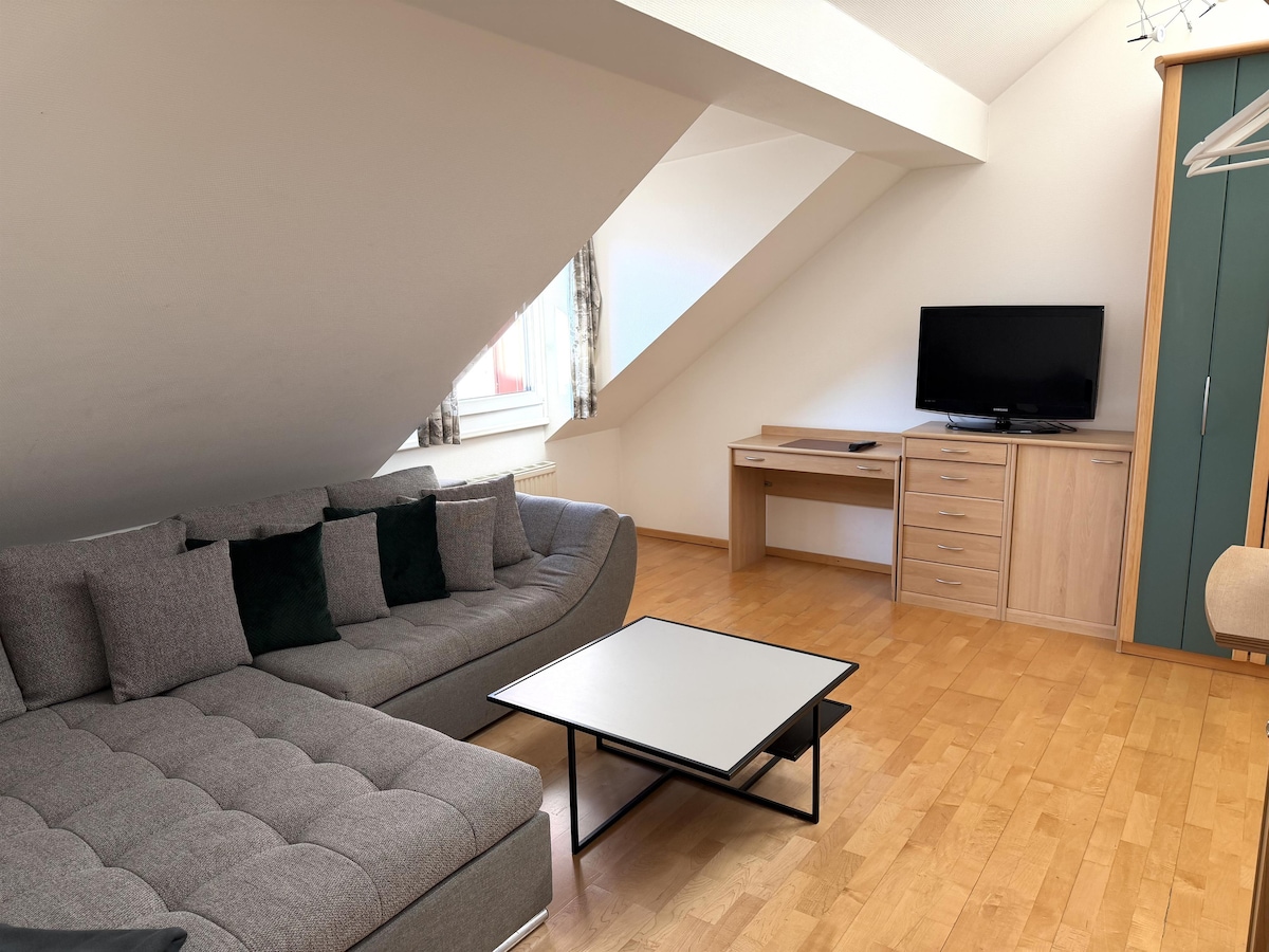 Dobrodošli v našem udobnem stanovanju v idilični vasici Urlau! Ta prostorna nastanitev s površino 48 m2 ponuja prostor za dve odrasli osebi in enega otroka, kar je idealno za sproščujoč oddih v slikoviti regiji Allgäu. Lokacija na robu vasi Urlau vam omogoča, da uživate v miru in naravi. Obenem pa je oprema Leutkircha oddaljena le 8 minut vožnje z avtomobilom. Počitniški park Center Park Allgäu je od počitniškega stanovanja oddaljen le 2 km.