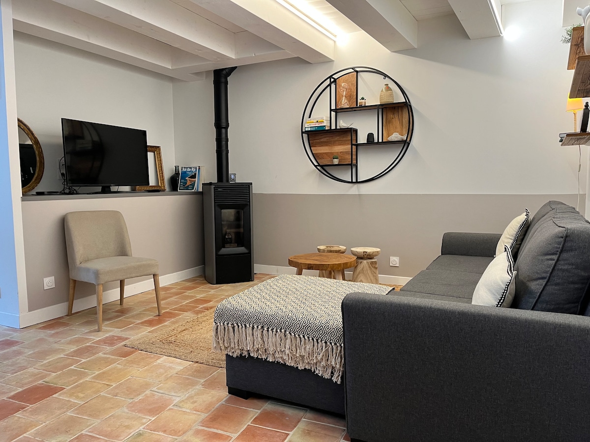 Očarljiva hiša v osrčju St-MARTIN-a, v bližini pristanišča in kolesarskih poti v mirni rezidenci, z vsem udobjem in sodobnostjo za preživljanje prijetnih trenutkov, sprostitve in polnega lepih spominov. Kuhinja za res kuhanje (velika pečica, velika kuhalna plošča, velik hladilnik z zamrzovalnikom, velik pomivalni stroj), odlična posteljnina za miren spanec, prha, velika terasa za uživanje v zunanjosti in brezplačno parkiranje v senci.
