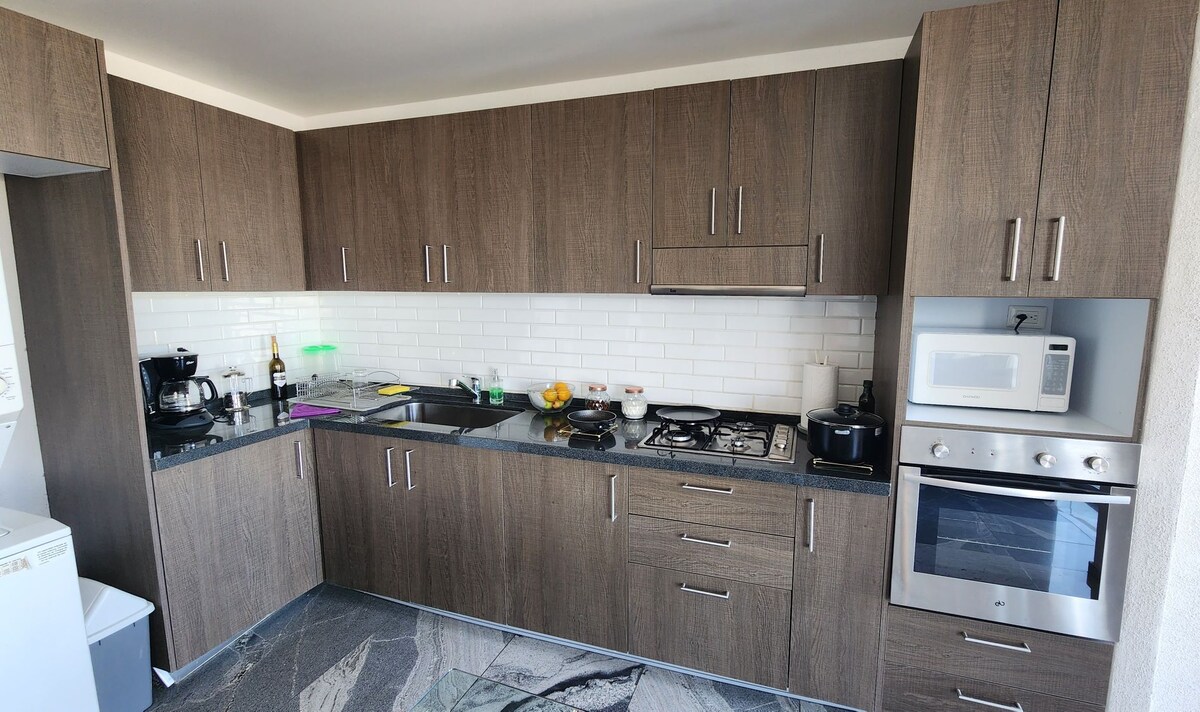 El departamento tiene para ti y tus acompañantes todo lo necesario para una estancia cómoda. Consta de una recámara Queen, clóset, baño, completo, Aire Acondicionado, pantalla y un acogedor balcón. Cocina equipada para preparar tus mejores platillos, sofá cama, que se convierte en cama Queen, pantalla de 65”, Internet de alta velocidad y una espectacular, terraza, perfecta para relajarse, tomar una taza de café, una copa de vino y contemplar la vista a los arcos del milenio y puente Matute Remus