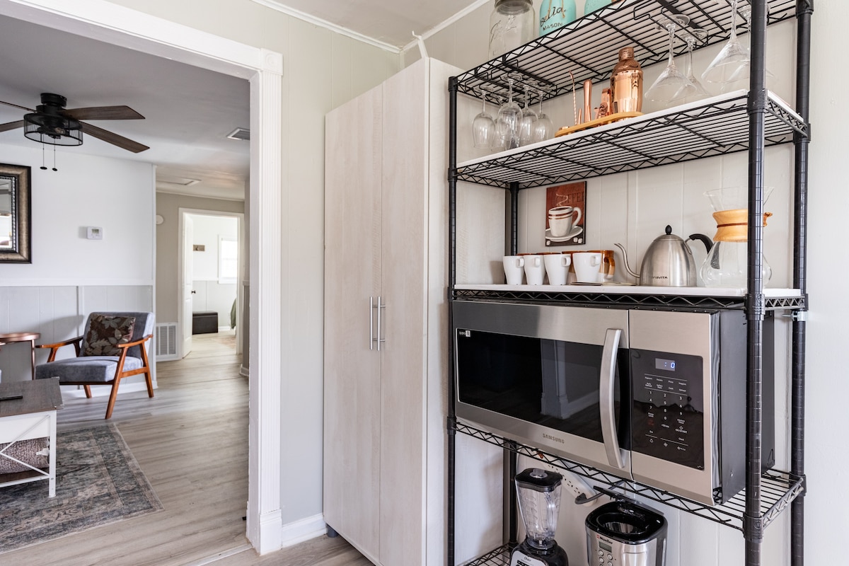 To elegantno popolnoma prenovljeno prenočišče se lahko pohvali z veliko kuhinjo z dvema spalnicama in eno kopalnico. Udobna dnevna soba je kot nalašč za gledanje filmov, vaše najljubše oddaje ali pa prosite Google, naj zaigra vašo najljubšo glasbo. Pohvalite veliko kuhinjo s šestimi sedeži v jedilnici, ki se lahko uporablja za družinske igre ali kot delovni prostor. Zunanji prostori vključujejo veliko sprednjo verando, kjer lahko uživate v najljubši pijači, in velika terasa zadaj za žar. Vse minute od središča mesta Seguin.