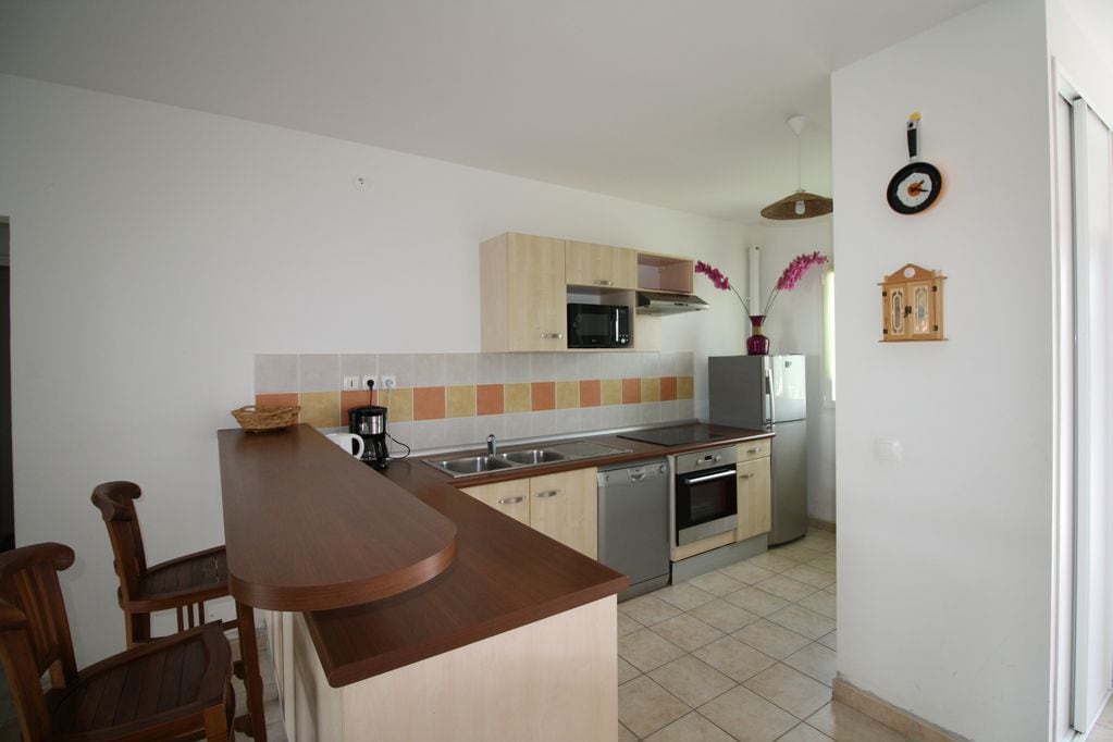 Pridite in se sprostite v tem mirnem zatočišču, ki je kot nalašč za odklop. Pomislili smo na vsako podrobnost tega na novo prenovljenega bivališča, da vas bodo obogatile energije dobrega počutja. Ta kokon z vsem udobjem opreme in zasebnim bazenom (3,20*3,20 m) vam bo omogočil, da preživite edinstvene trenutke v mirnem okolju, medtem ko uživate v bližini vasi Saint-François (igralnica, golf, marina, aerodrom) in plaž, od katerih je prva 800 metrov stran.