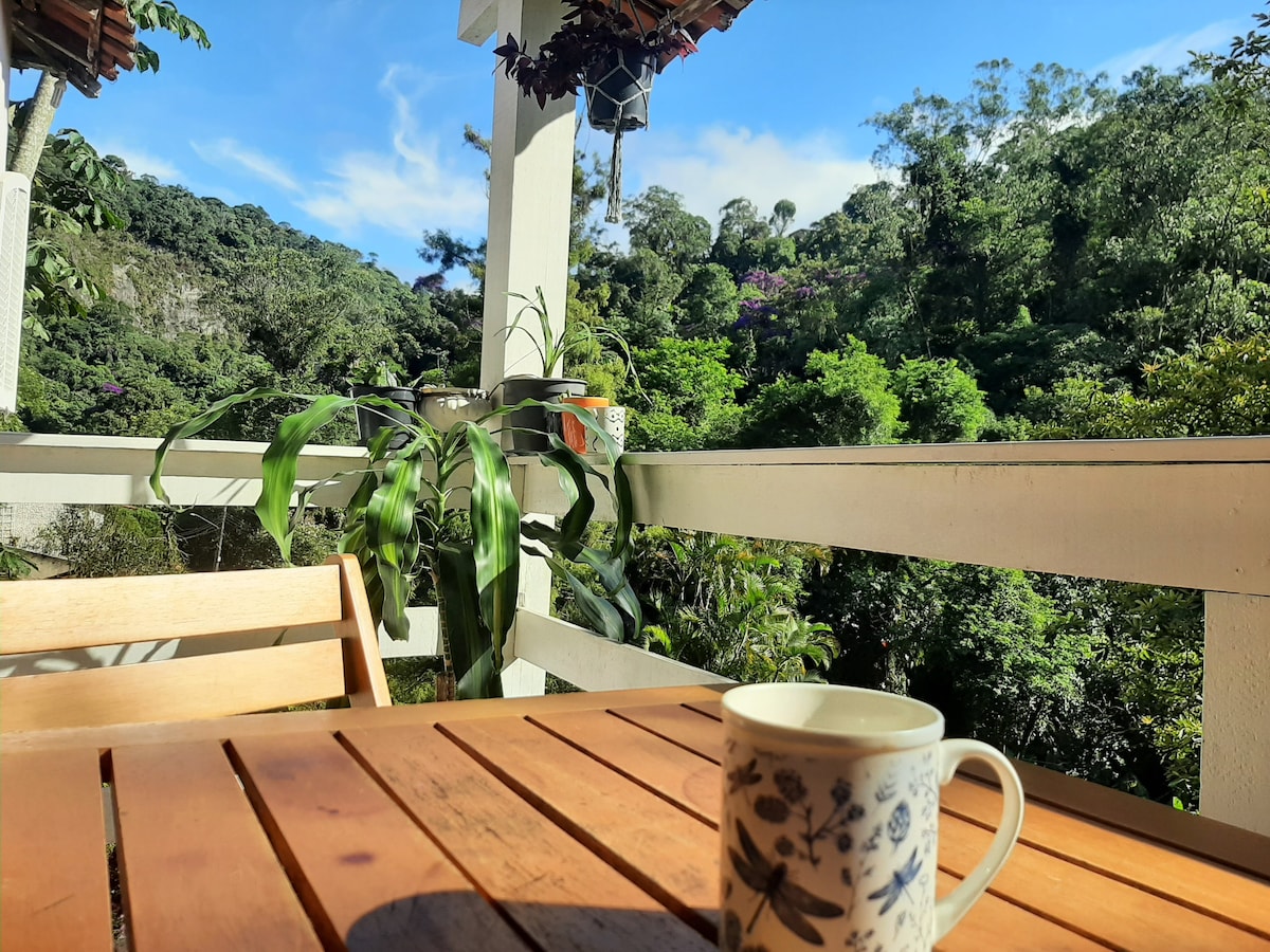 Velika in udobna hiša sredi atlantskega gozda, s potokom, pogledom na gore in super mirno. Kot nalašč za družinske trenutke in ponovno povezovanje. 10 minut od središča mesta Itaipava in enostaven dostop. Prostor Hiša ima notranji in zunanji kamin, suita ima zakonsko posteljo, TV 50 palcev, topel in hladen zrak. Viseče mreže, pergola, žar in prha naredijo prostor za prosti čas zelo prijeten.