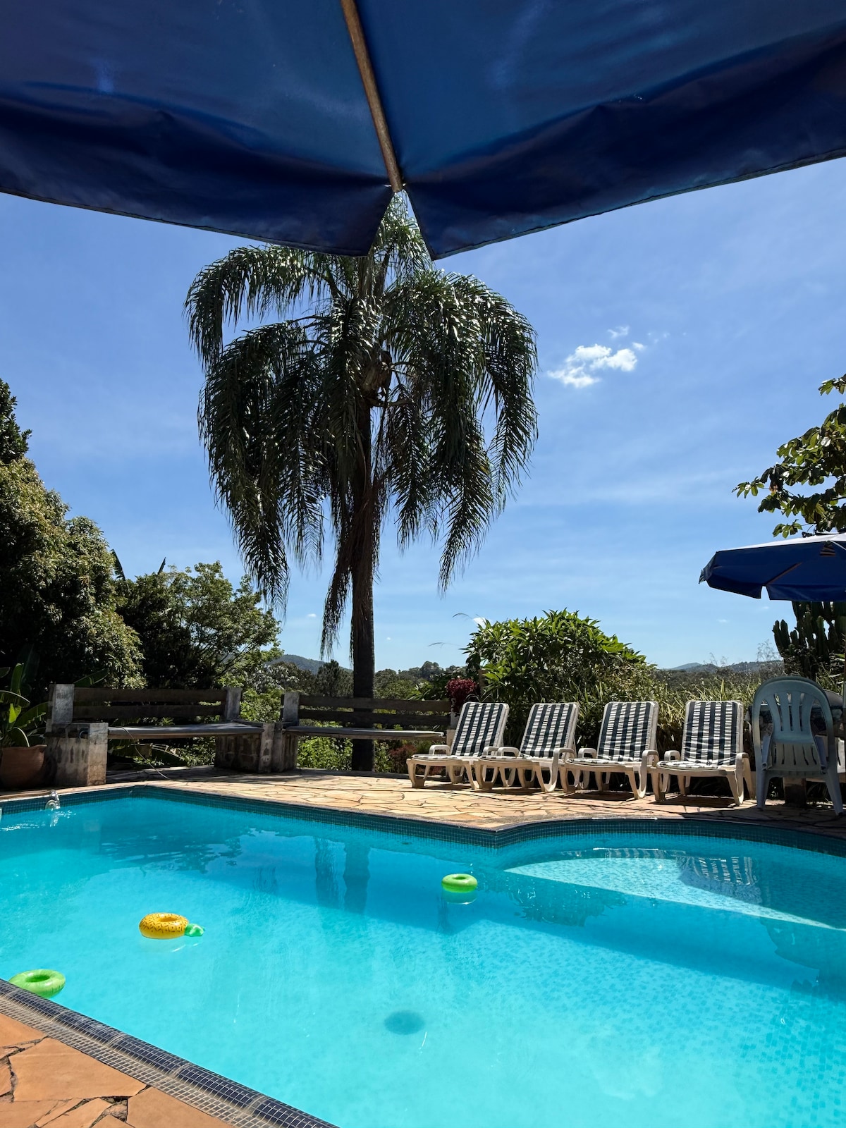 Kmetija se nahaja v Mairiporãu, v ograjeni skupnosti s 24-urnim receptorjem. Asfaltirane ulice za prihod na kmetijo. Sestava sob Na voljo so 4 spalnice 2 suiti S kopalnico v stanju pripravljenosti pred spalnicami - skupaj 3 kopalnice. 4 zakonske postelje 4 enojne vzmetnice na tleh. 1 enojna Bicama Celotna struktura za spanje do 14 oseb. za vsakega hišnega ljubljenčka zaračunamo doplačilo v višini 100,00 R$ za vsakega hišnega ljubljenčka, ki ga zaračunamo neposredno gostitelju