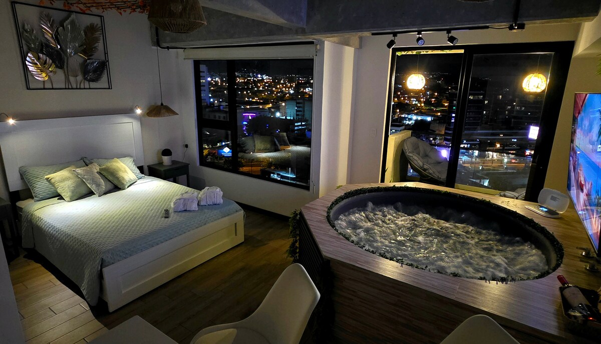 Vila Onix Na novo zgrajeno gorsko zatočišče v središču mesta, 180 stopinj neverjetnega panoramskega razgleda z kateregakoli vogala. Popolnoma obsežna zasnova, dobro opremljena kuhinja, odprta med jedilnico in dnevno sobo, bo zagotovila udobje vašega počitka in sožitja. Prostorna terasa z neskončnim jacuzzijem, ki se nahaja na popolni lokaciji z najboljšim razgledom, se boste počutili, kot da ste del pokrajine. Ob prihodu na parkirišče se moramo povzpeti po 75 stopnicah, da pridemo do vile.