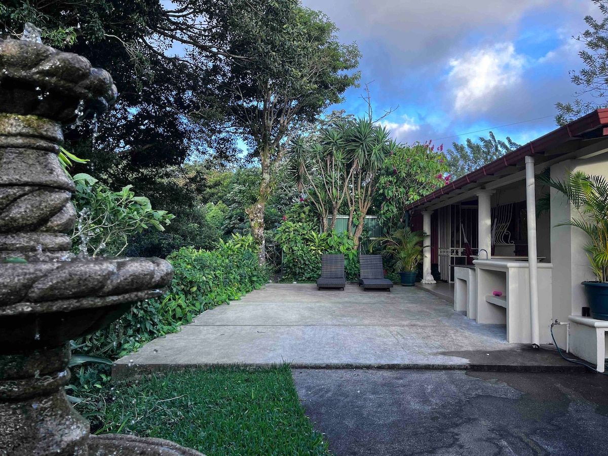 Doživite neverjetne sončne zahode v naši udobni hiši, ki gleda na vulkan Tenorio, obdani z naravo, zelenimi površinami in velikim vrtom. Nastanitev se nahaja na gorskem območju, ki je lahko dostopno za katero koli vozilo. Ima velika okna spredaj in zadaj, ki ponujajo spektakularen pogled na vulkan in goro. S terase lahko uživate tudi v čudovitih razgledih, saj je zasnovana tako, da lahko uživate v pogledu na obzorje in bazen, kar je 100 % nepozabno doživetje.