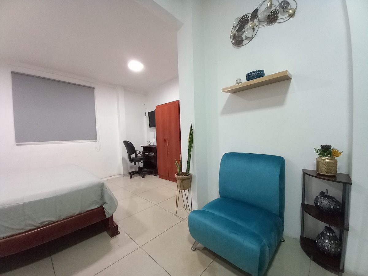 - 100% zasebno - Notranje dvorišče - 17 minut od konzulata Americano, 12 minut do Aeropuerta, 7 minut do Sanmarina - 1 zakonska postelja (Queen) + 1 raztegljiv kavč - 2 pametna televizorja in internet - Čajna kuhinja - Prihod: 15:00 Odhod: 11:00 - Cédulas/potni listi so obvezni - Brezplačno zasebno parkiranje na trgu Plaza Guayarte, pred lastniškim stanovanjem, zaščiteno. Časi: Sun a Juev: odprto OB 6.00 se zapre OB 12.00 Vie y Sob: odprto OB 6.00 se zapre OB 1:00 - Parkiranje brez skrbnika: Nasproti sprednjega vhoda. (1 prostor)