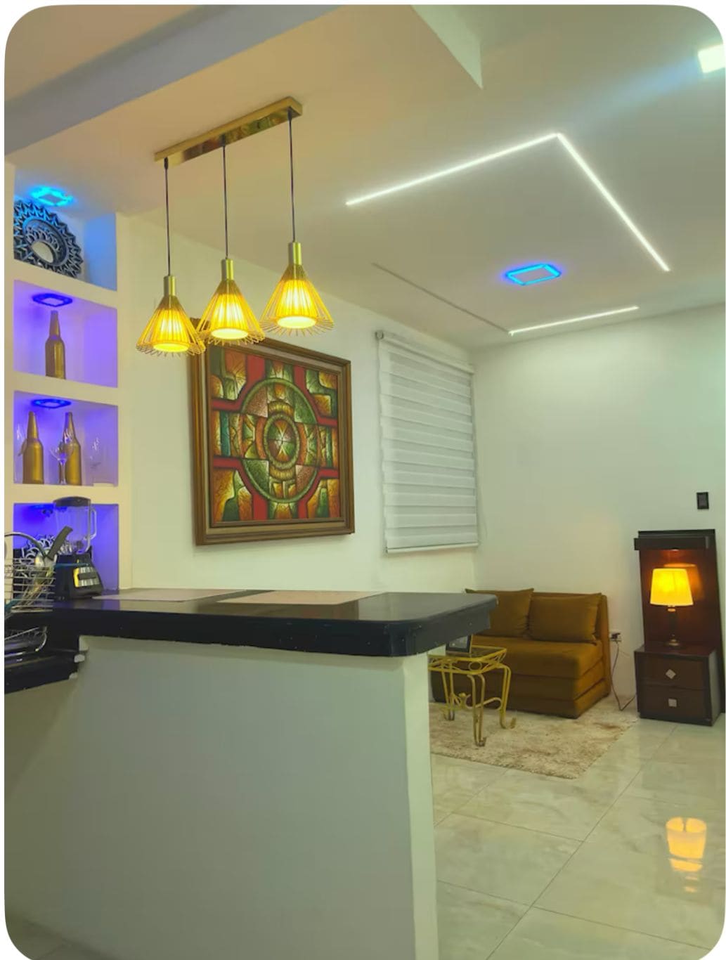 Ubicada en un condominio seguro, esta suite ofrece una experiencia única con una decoración moderna que incluye un columpio de rosas y chimenea decorativa. Con cocina totalmente equipada, área de trabajo, Wi-Fi, es perfecta para turistas, nómadas digitales, parejas y viajeros de negocios. Ubicada sobre una avenida principal, frente a un mall con tiendas y restaurantes, a solo minutos del aeropuerto, terminal de buses y centro turístico. Disfruta de recepción 24/7 y servicio de lavandería.