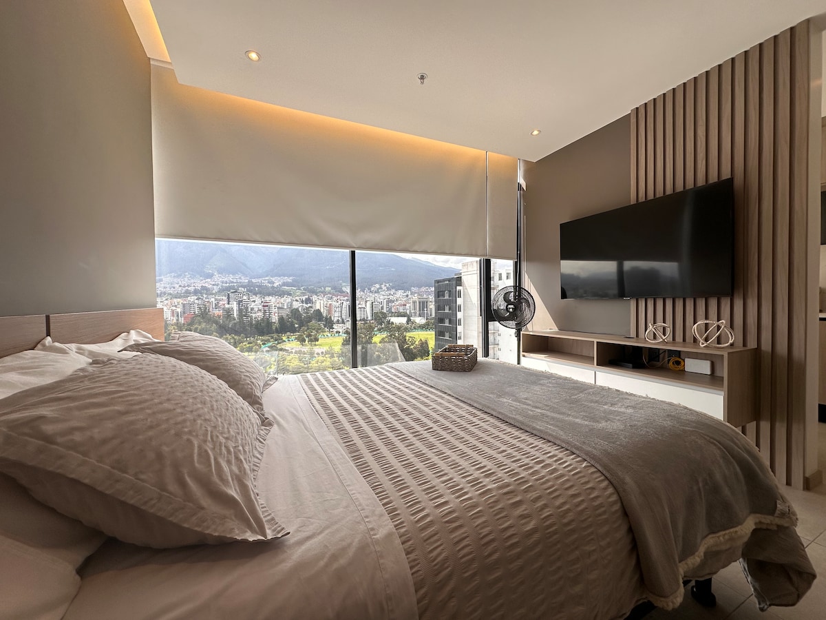 Disfruta de la mejor ubicación en Quito: un departamento moderno y acogedor frente al parque La Carolina. Perfecto para familias, ejecutivos y viajeros que buscan comodidad y acceso inmediato a lo mejor de la ciudad como restaurantes, parada del metro y centros comerciales. - Wi-Fi - Netflix - Plancha - Cocina totalmente equipada - Secadora de cabello - Lavadora y secadora - Agua caliente - Cortinas con control remoto. Áreas sociales - Gimnasio - Jacuzzi - Zona BBQ - Cine - Parqueadero