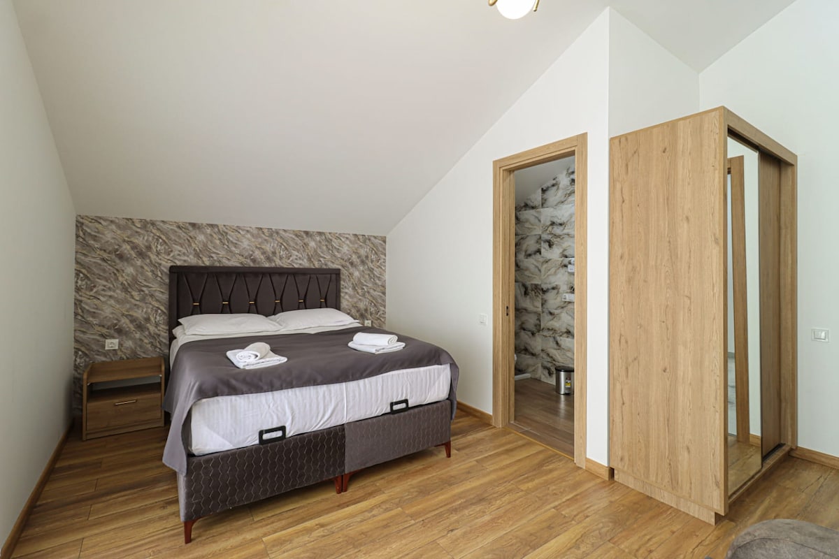 Edinstvena nastanitev z lastnim slogom, barom, savno in bazenom. V sklopu namestitve je na voljo brezplačno zasebno parkirišče. Za doplačilo je organiziran prevoz od in do letališča ter brezplačen prevoz do smučišča. Plezanje na smučišče ni težava. Kapaciteta več kot sedmih ljudi je tisto, kar potrebujete za lepe spomine.